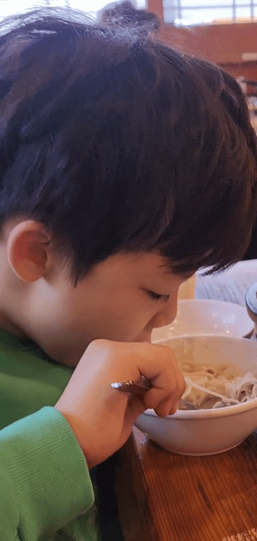 동글이건 뜨거울까봐 식혀서 먹였고요 앞접시, 국자 포크도 가져다 주셨어요.