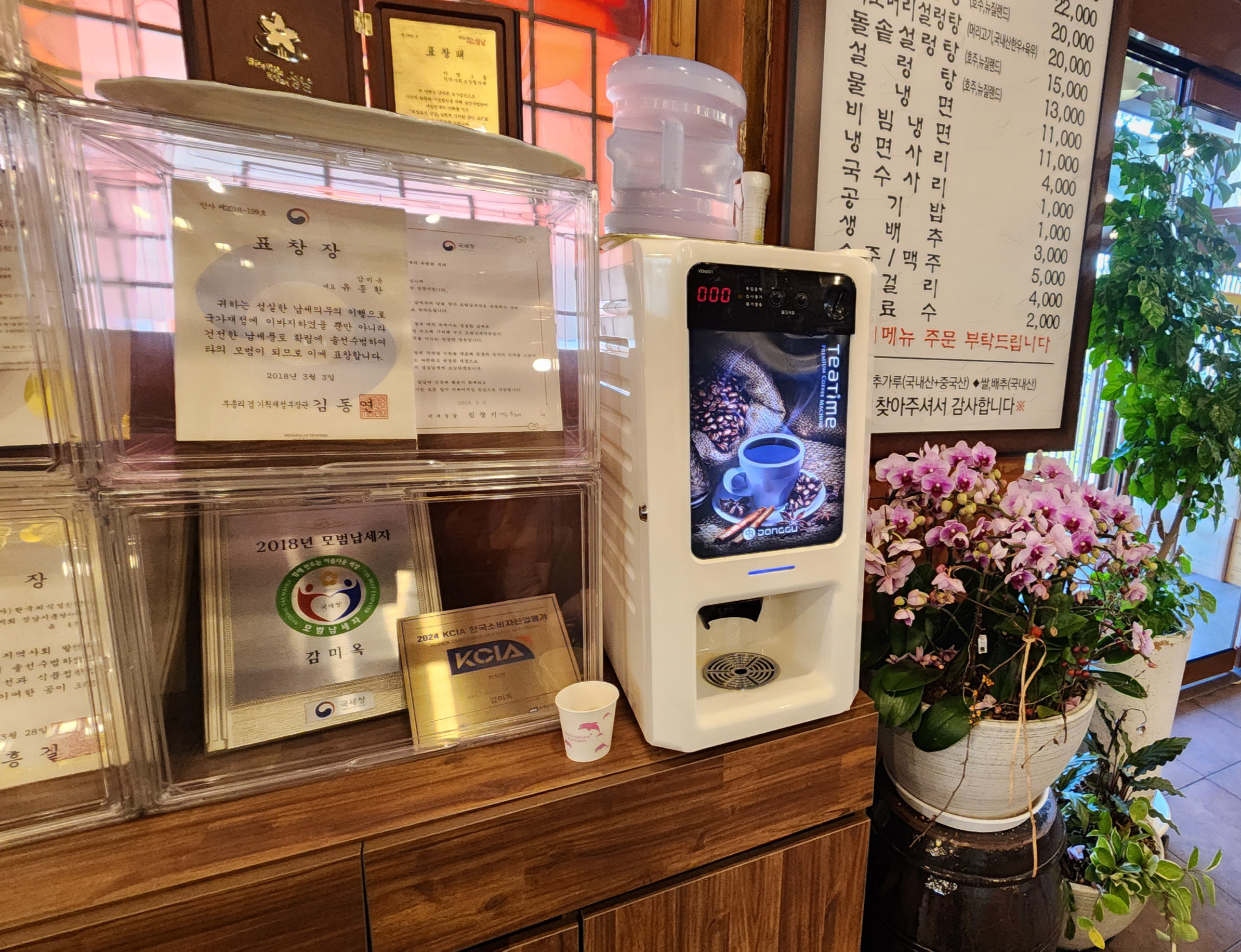 커피 자판기도 있었고 감미옥 당일 식사 영수증 소지시 카페로 에서 아메리카노 할인 내용도 볼 수 있었어요.