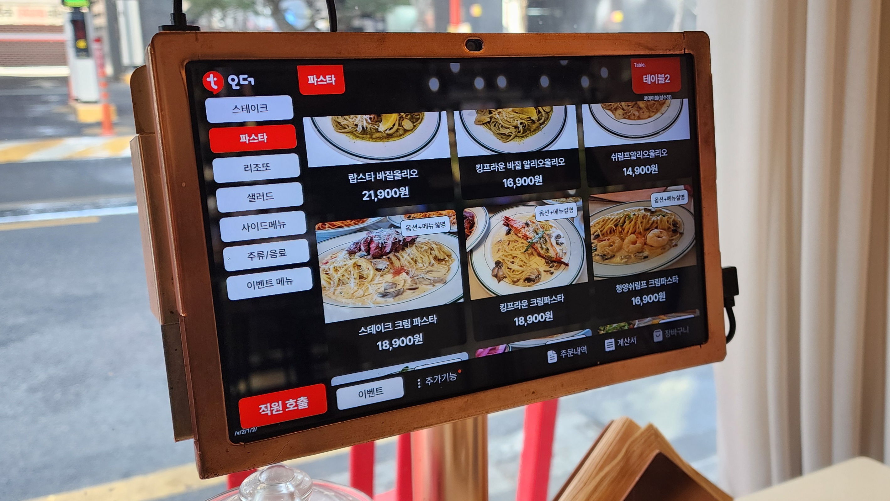 키오스크가 테이블마다 있어서 주문하면 되었어요.
