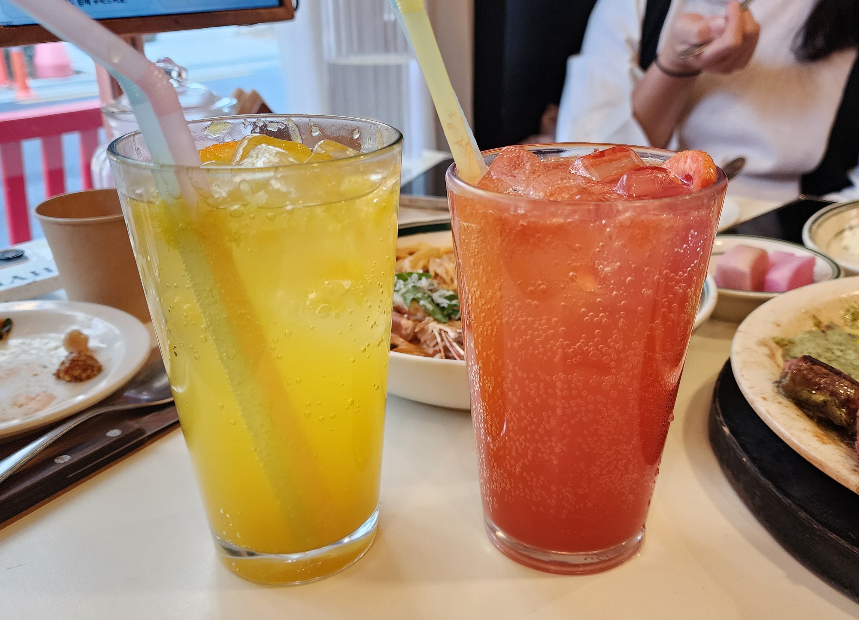오렌지 에이드와 자몽 에이드도 색이 예쁘더라구요.