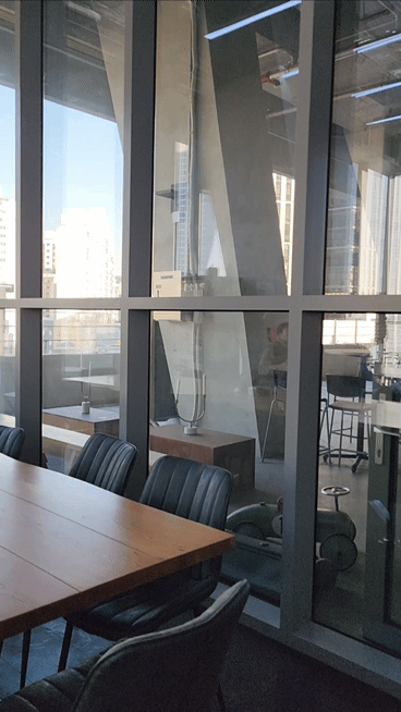 엘리베이터를 타고 5층으로 올라와서 밖으로 나오면 여기가 카페인가 싶은 곳이 나오는데요, 버튼을 누르면 블라인드가 쓰윽 올라가요.