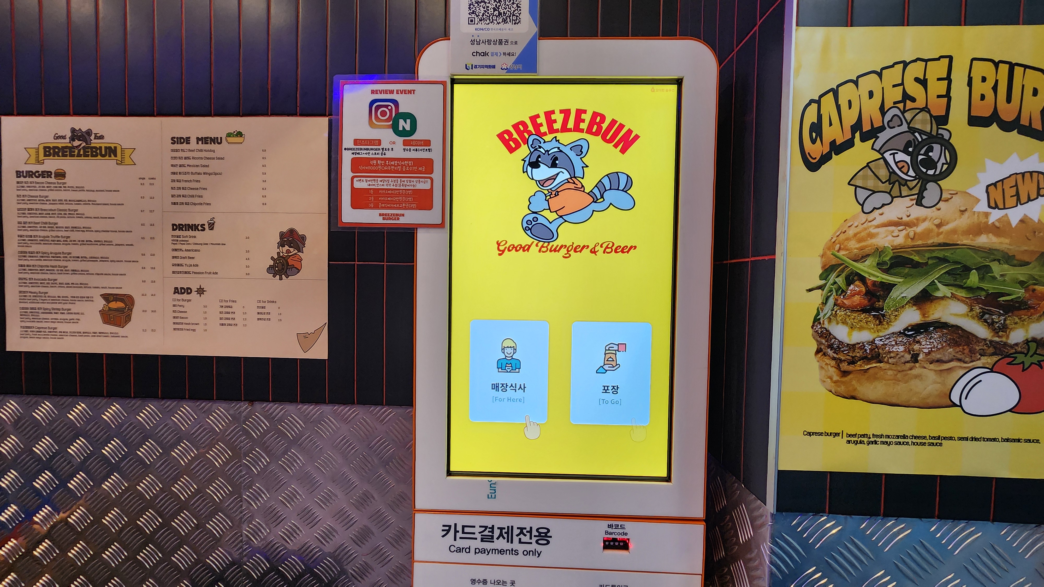 키오스크가 있어서 매장에서 식사할지 포장할지 선택할 수 있었는데요 저희는 매장식사 선택했어요.