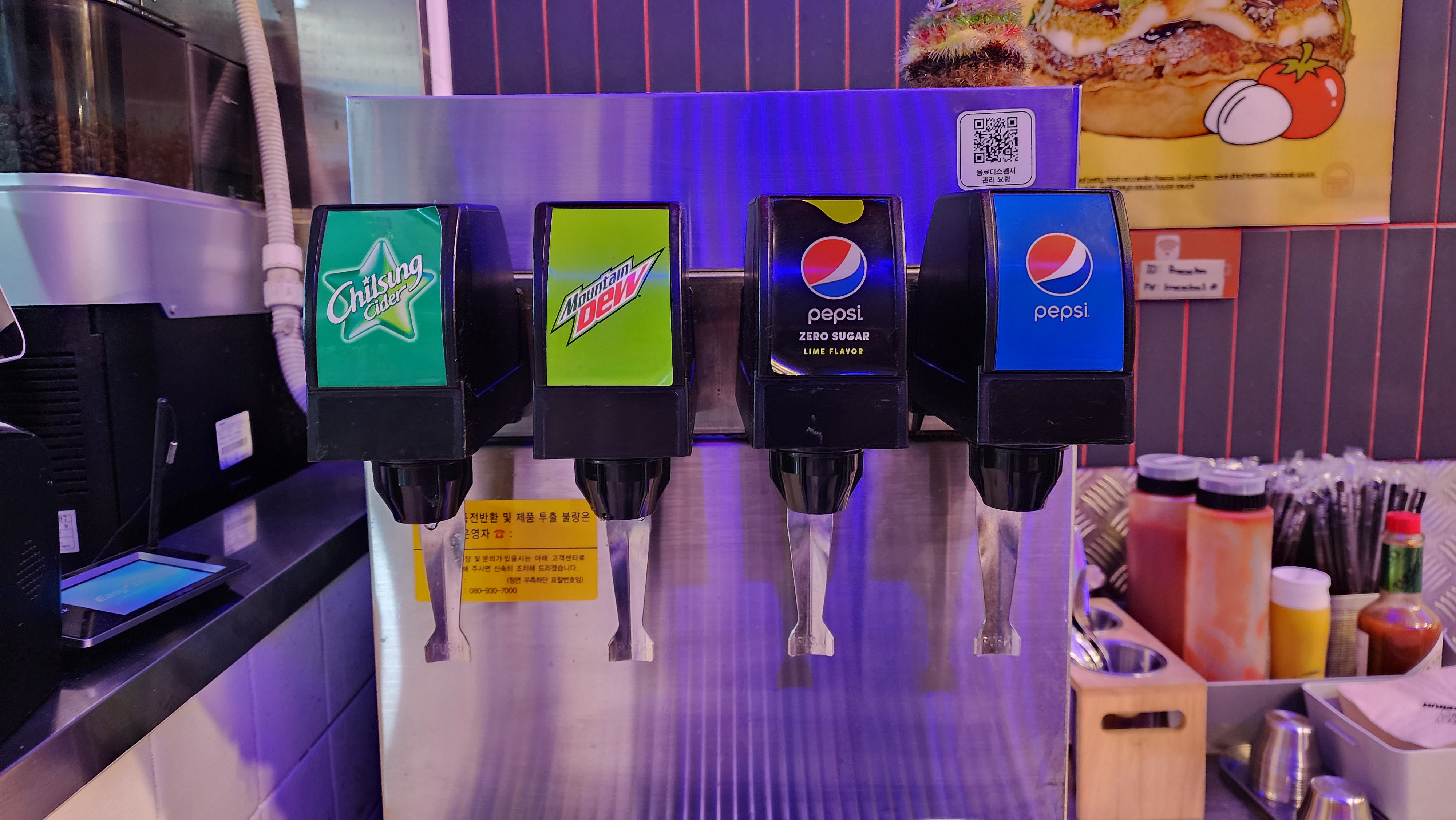 배달이나 포장은 어떤지 모르겠는데요, 매장에서 식사하면 탄산음료를 무한리필 할 수 있더라구요.