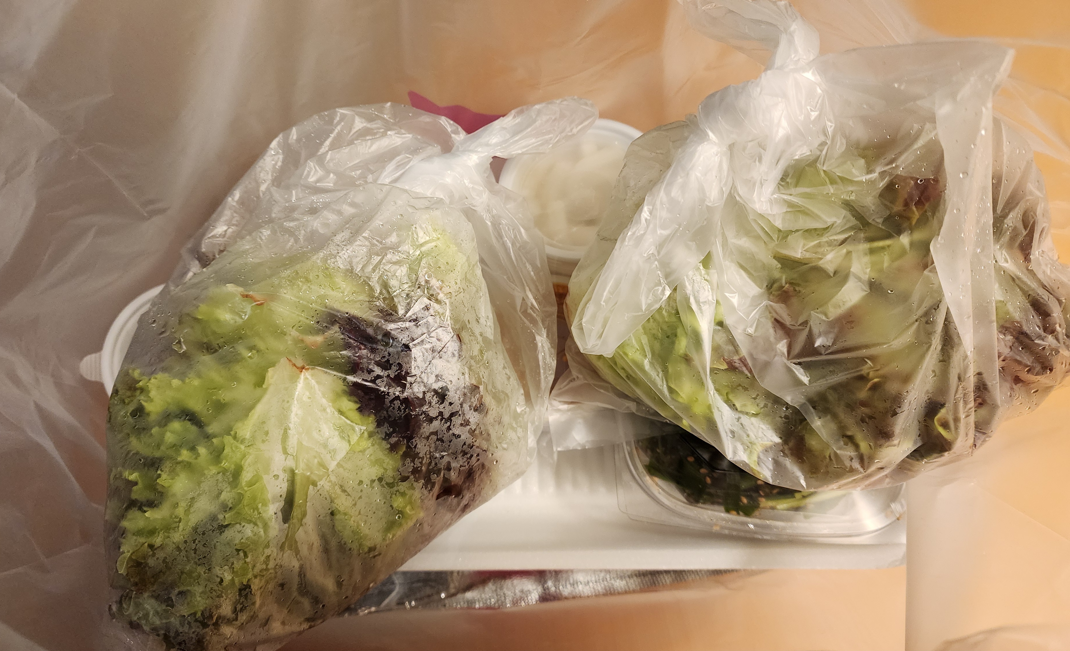 족발을 포장해온 봉투를 열면 이렇게 상추 두봉지가 먼저 보여요.