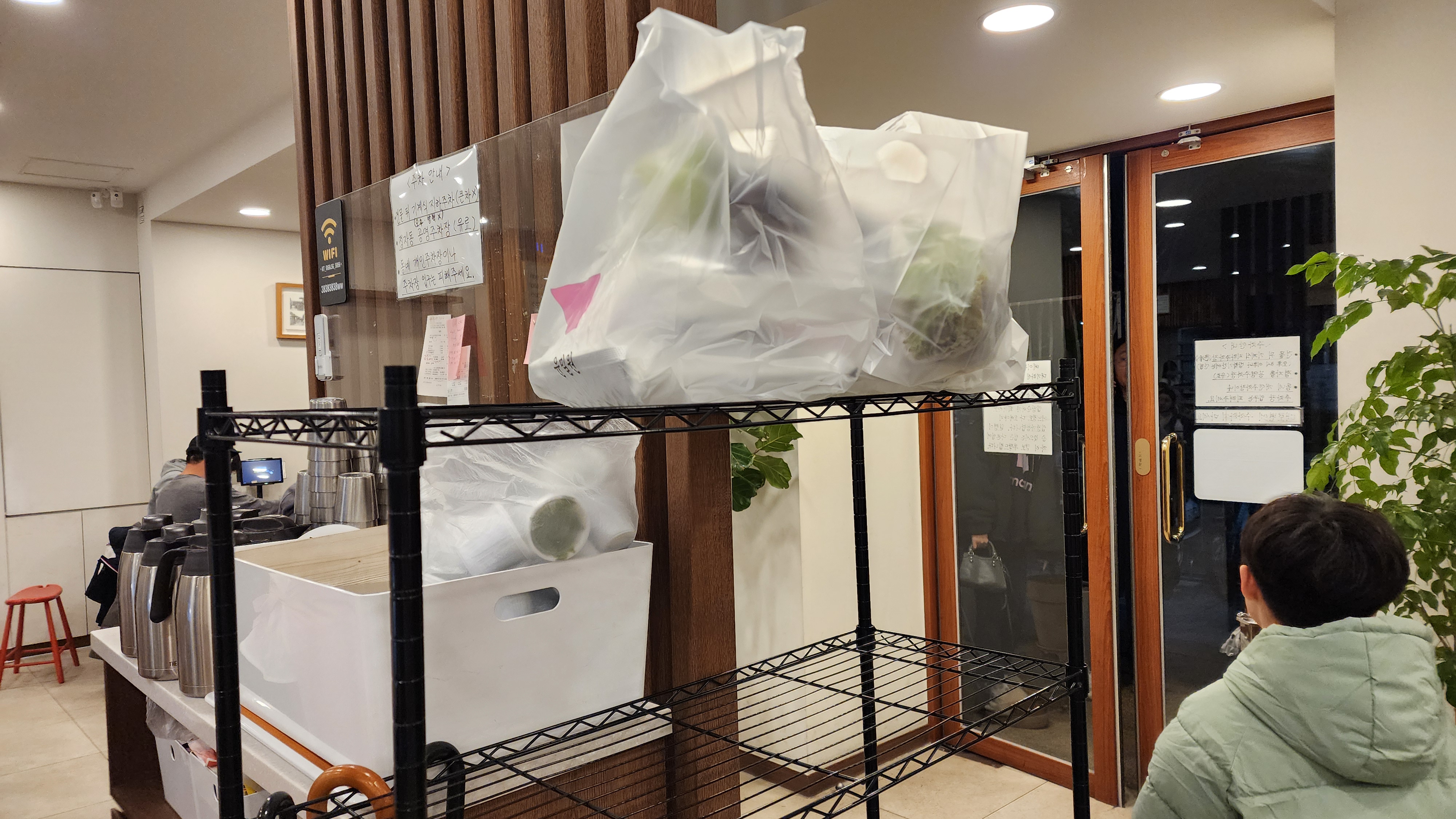 아마도 전화 주문 등으로 예약한 음식들인 것 같은데요 이렇게 미리 포장 되어 선반위에 있더라구요.