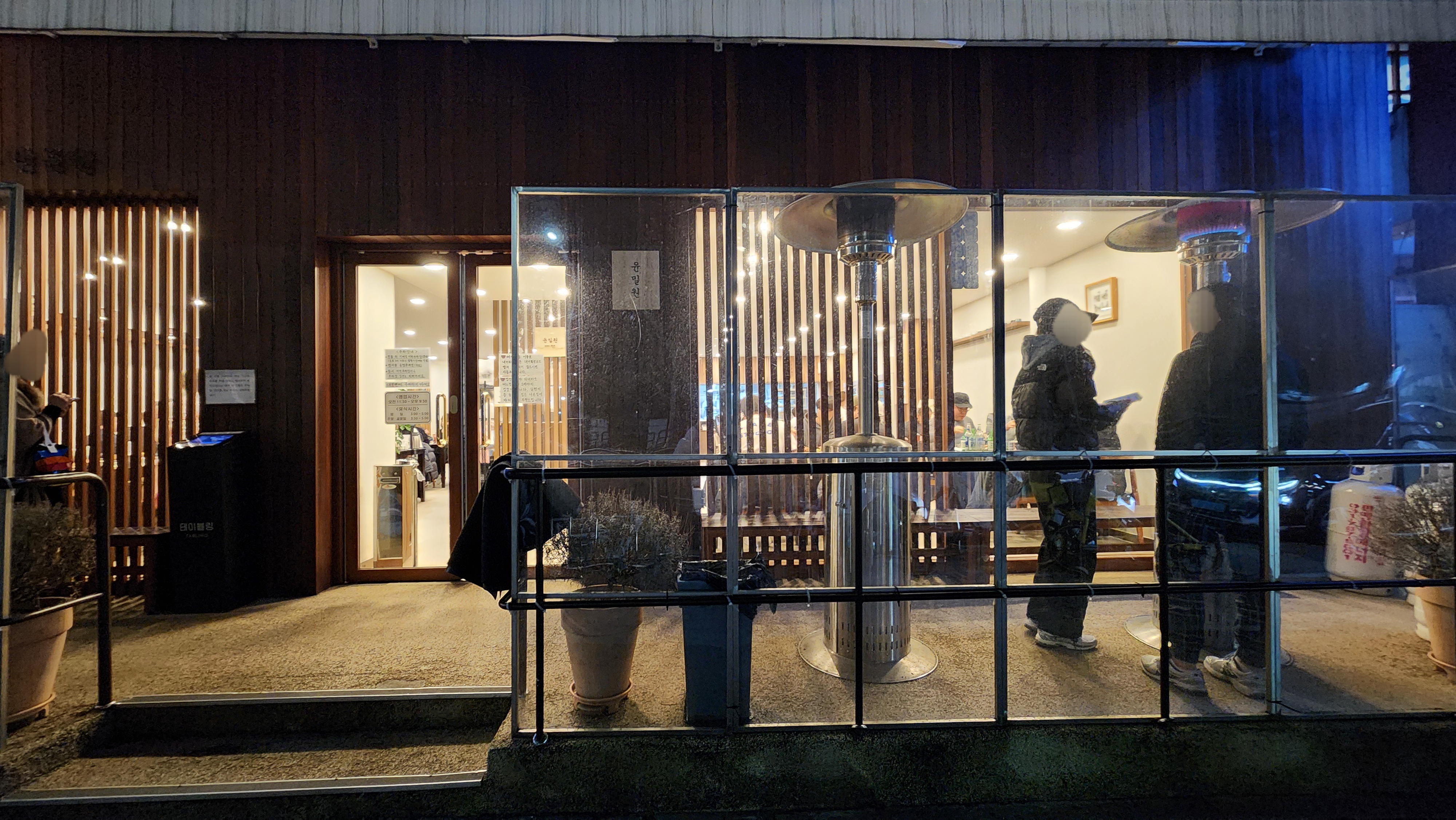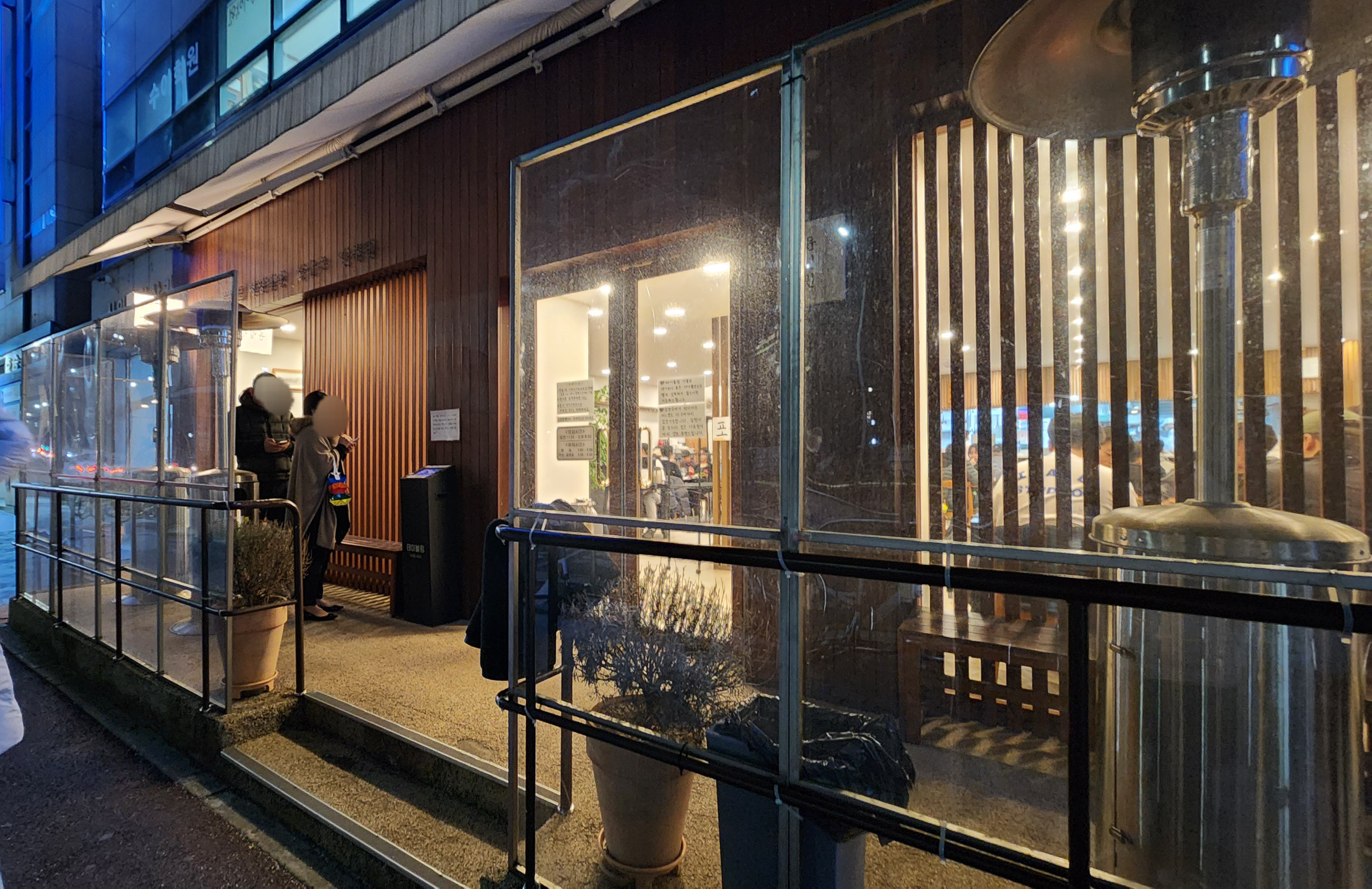식당 앞에 웨이팅 존이 있는데 손님들 추울까봐 난방 기구들이 놓여있더라구요.