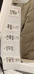 포장 메뉴는 족발, 반족발, 양무침, 양곰탕(냉장) 이렇게 가능 하더라구요.