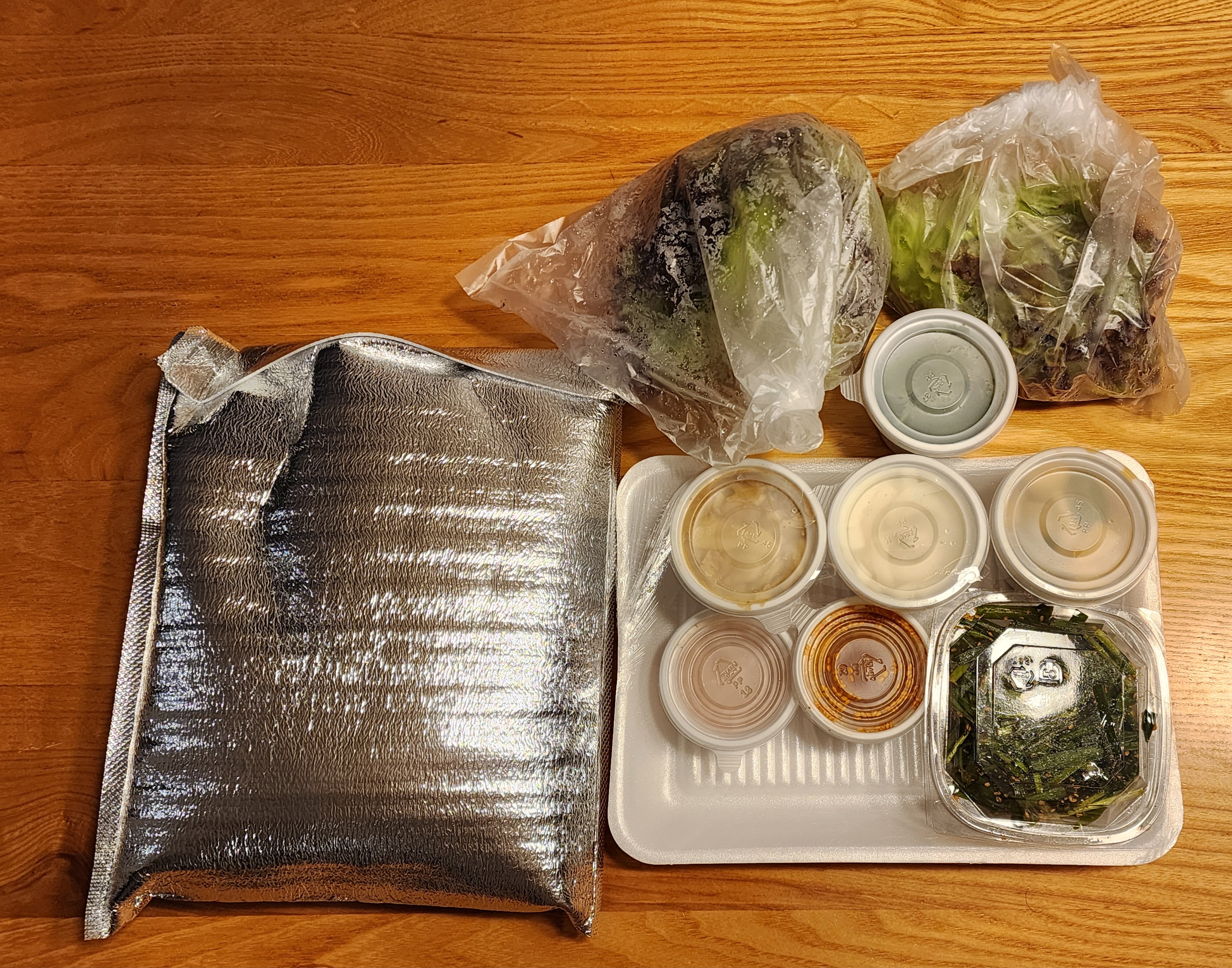 족발은 따뜻하게 먹을 수 있게 보냉백에 들어있고, 밑반찬과 소스류는 스티로폼 그릇에 랩핑되어 들어있더라구요.