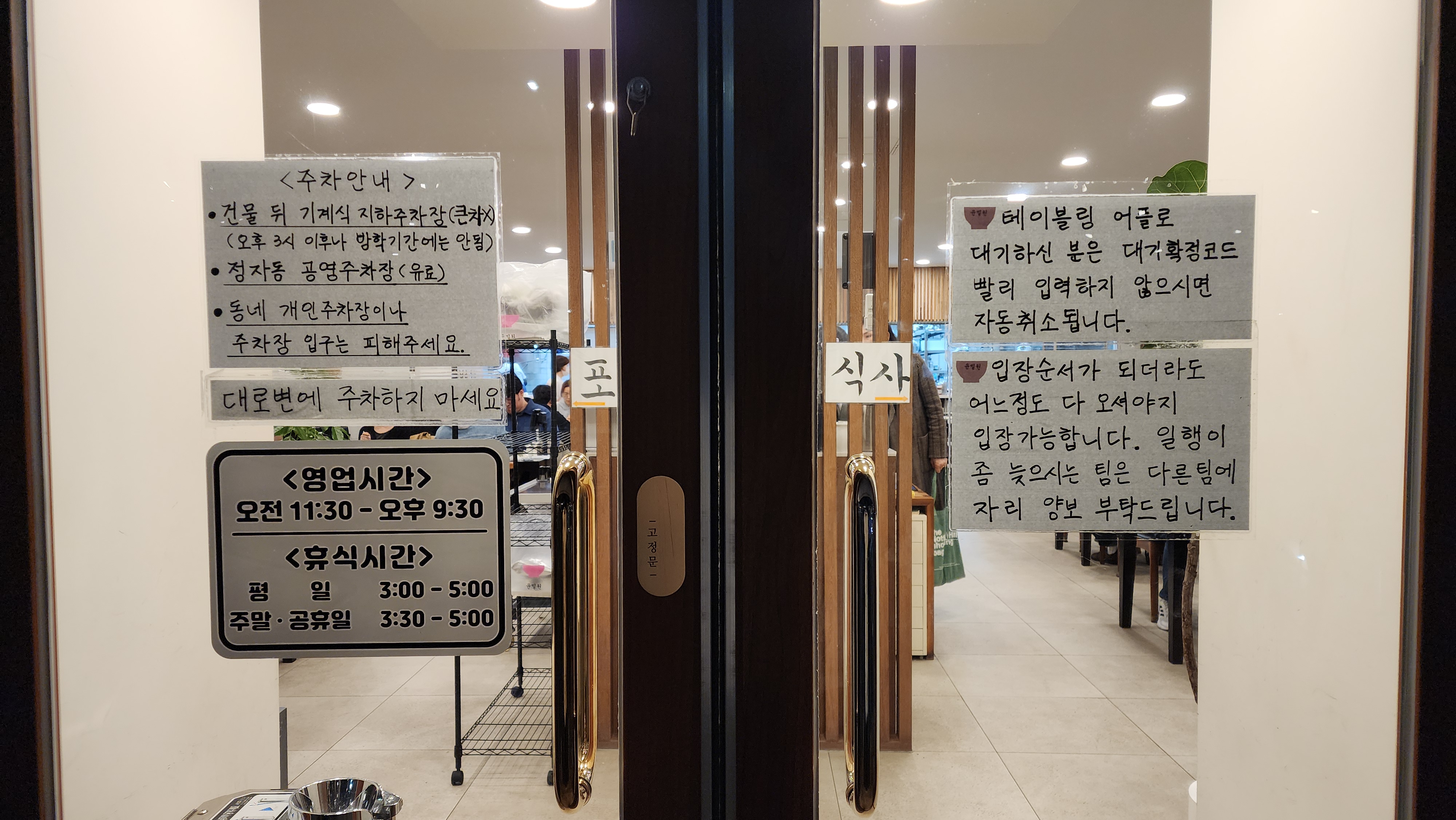 다른 블로그들 보면 여기 포장 주문 하려면 전화로 예약 해야 한다고 나와있어서 전화를 했는데 분명 영업하는 날인데도 자꾸 사서함으로 통화가 넘어가서 전화예약은 못한 상태로 방문했었답니다.