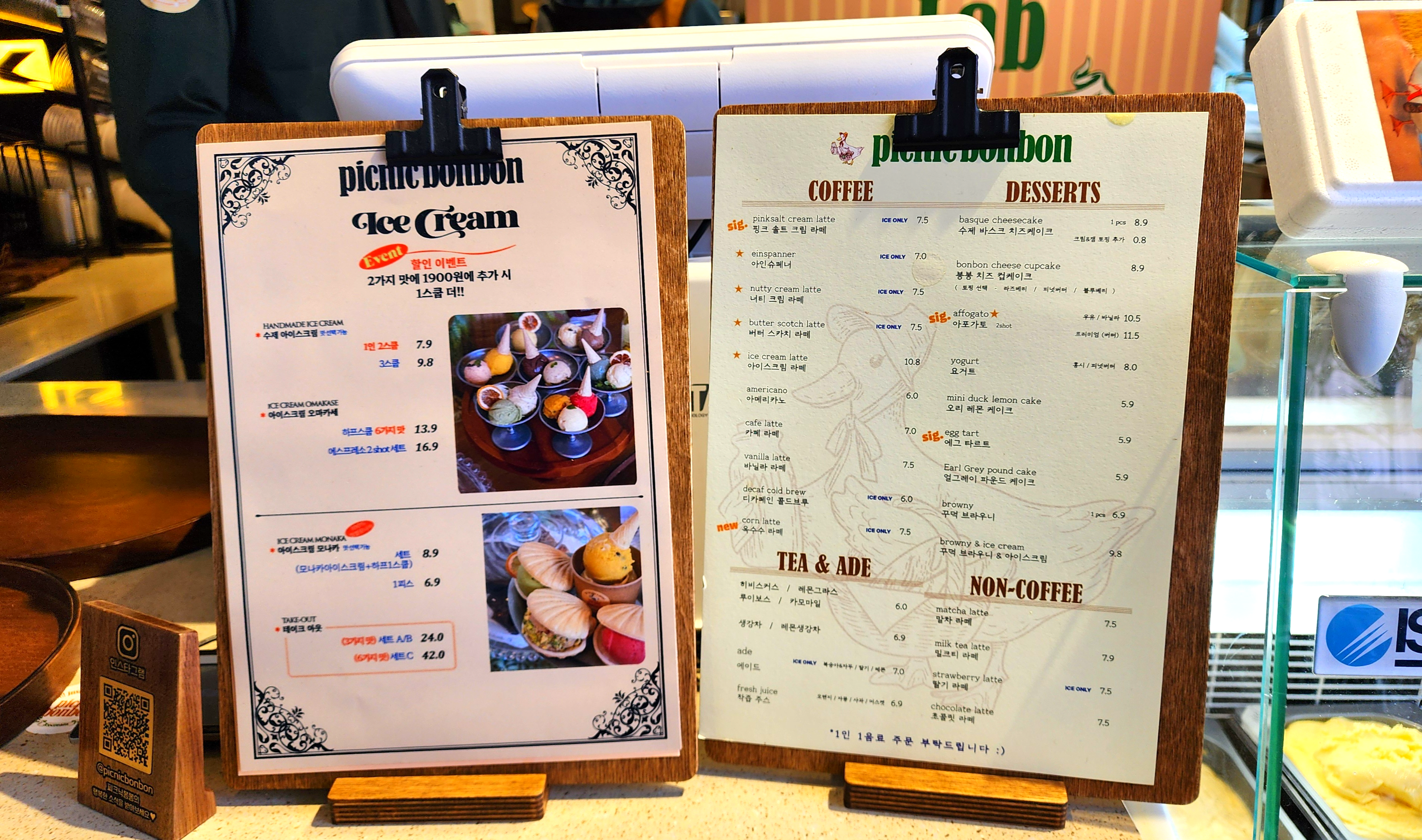 아이스크림은 수제아이스크림, 아이스크림오마카세, 아이스크림 모나카 메뉴가 있었고