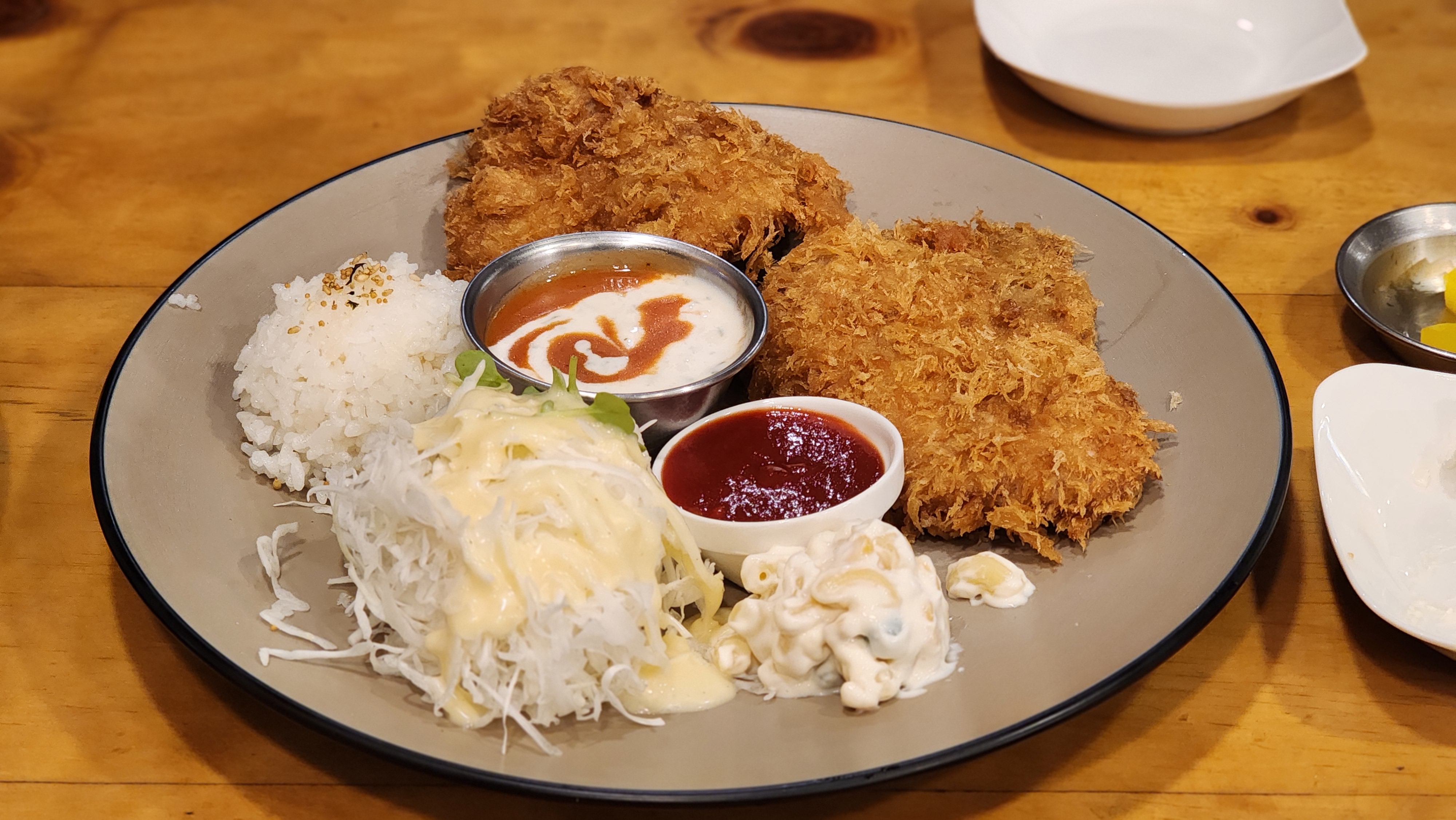 마카로니샐러드와 양상추샐러드, 약간의 밥과 함께 두툼한 돈까스가 나오는데요 푸짐한 구성을 보고 반가웠어요.