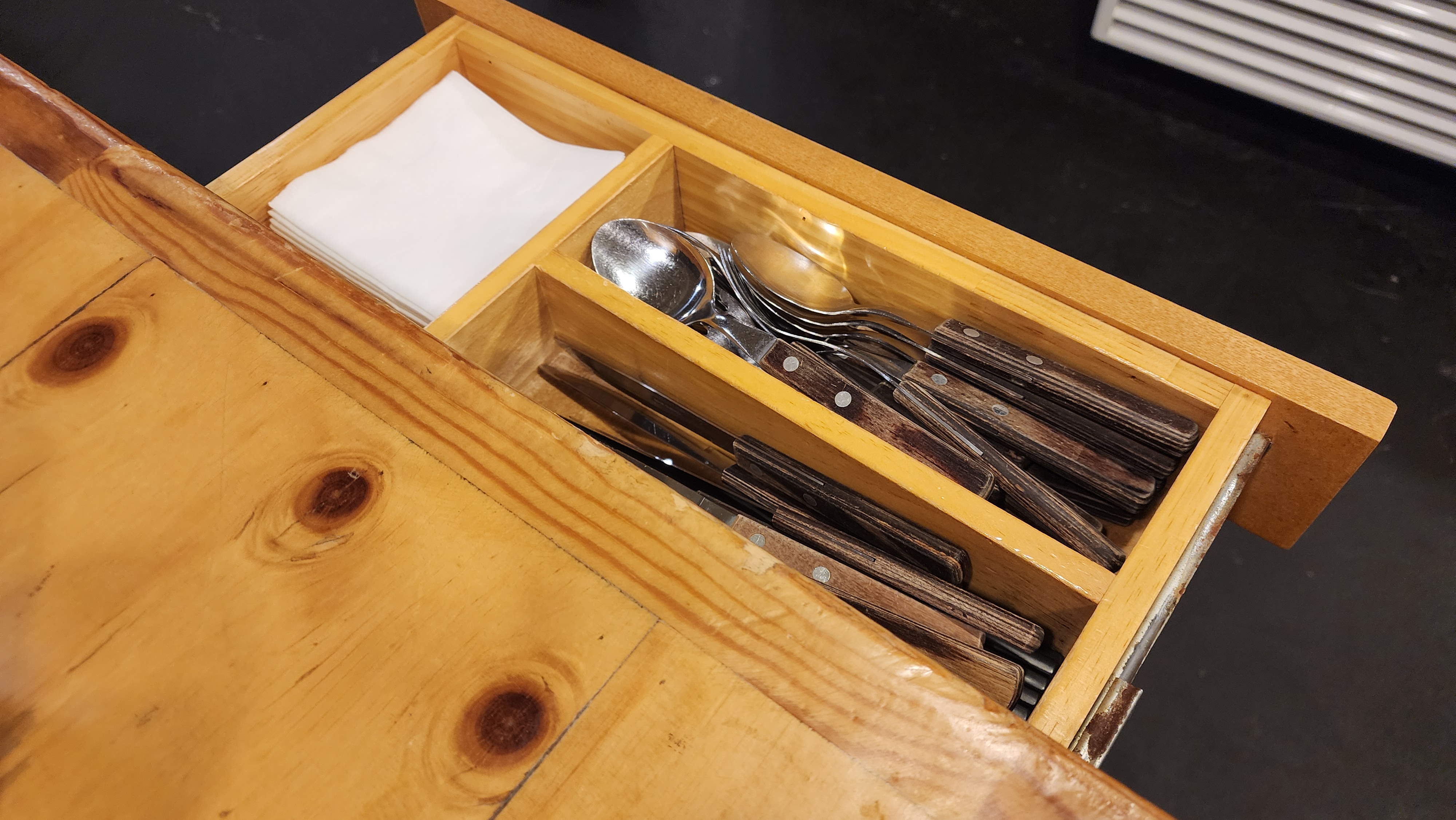 컵은 종이컵을 이용하도록 되어있었고 서랍을 열면 식기류가 들어있었어요.