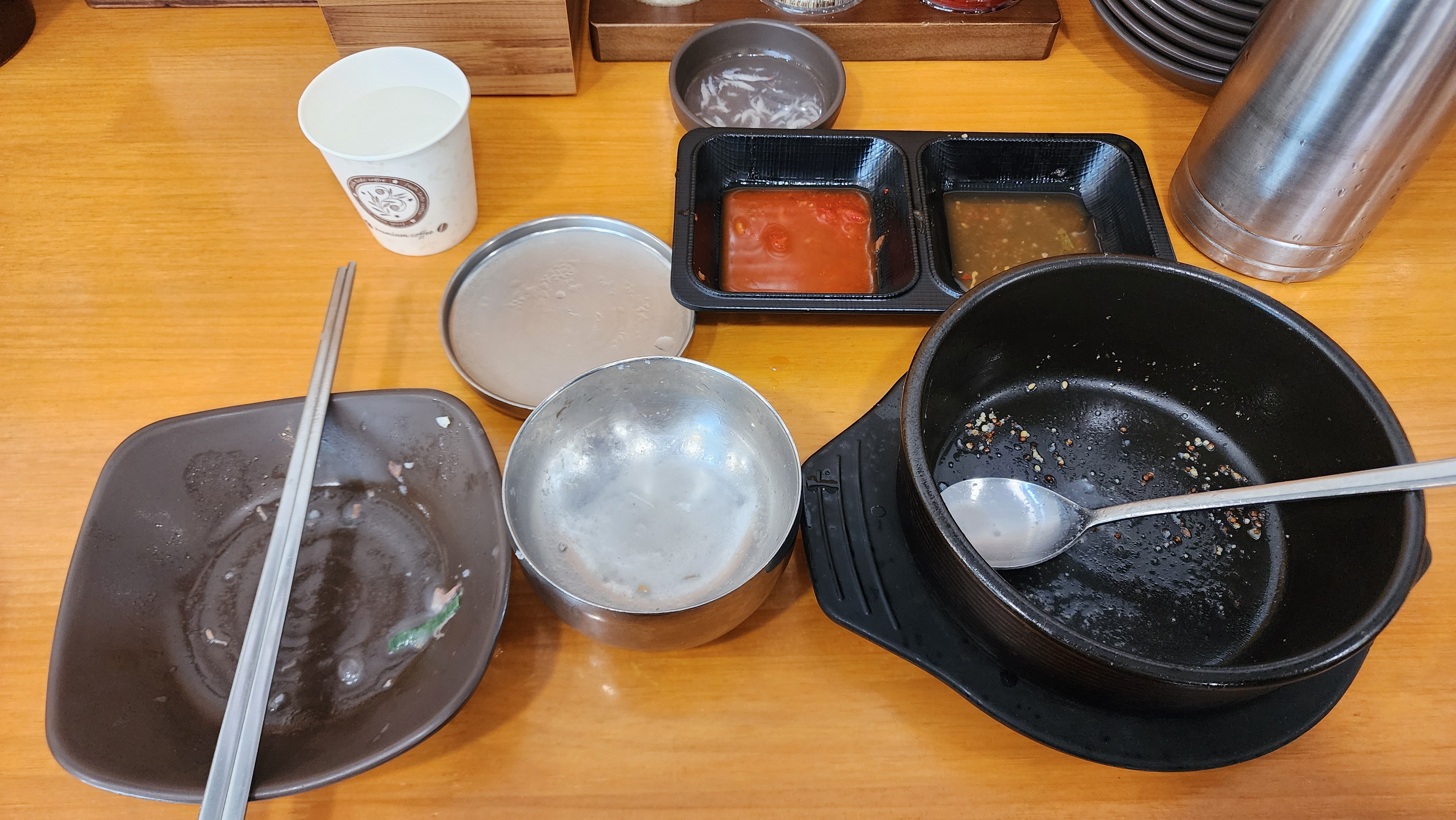 공깃밥과 새우젓, 종이컵과 물병을 먼저 가져다주시더라구요.