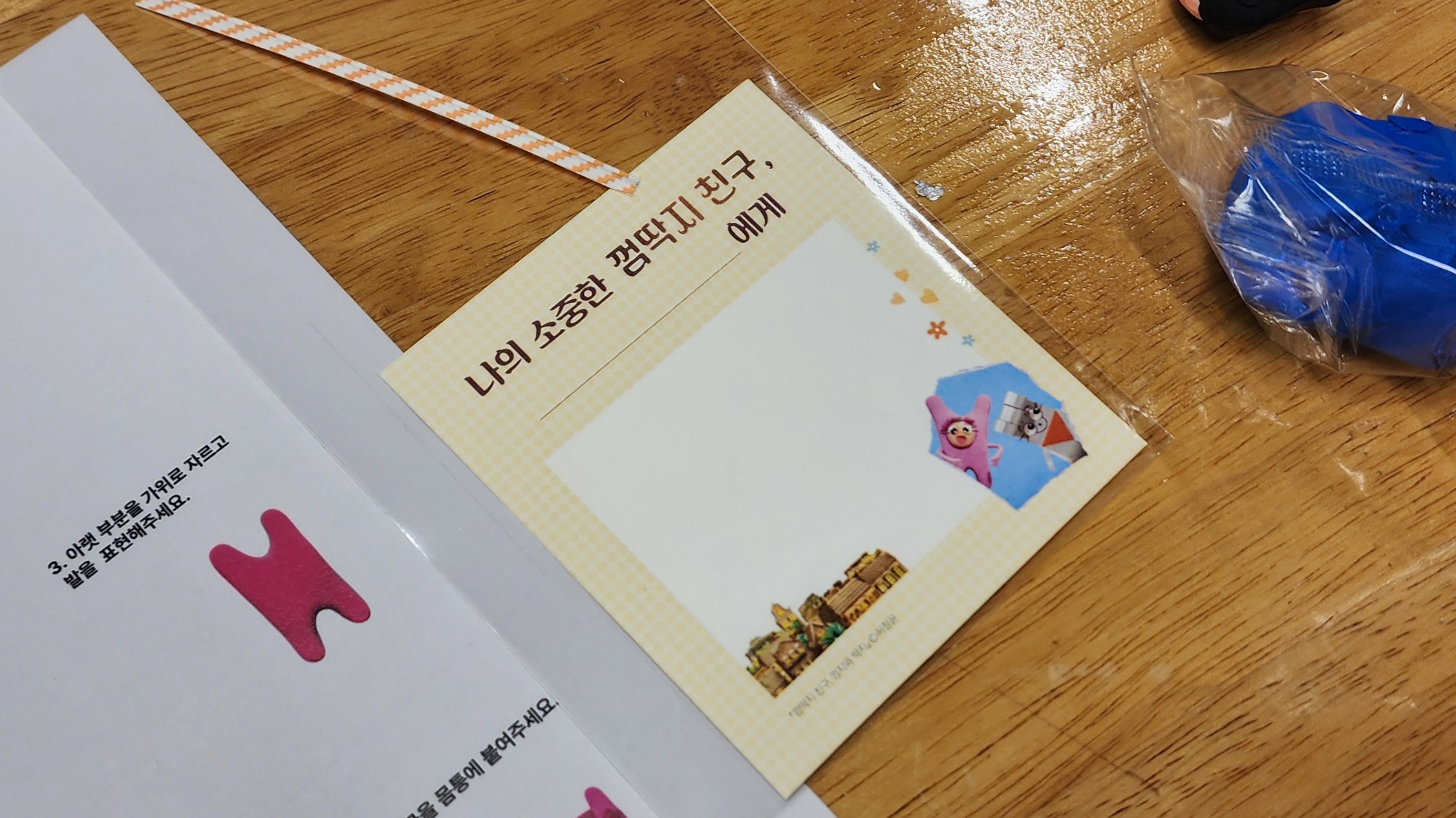 그림책을 읽어본 후에는 그림책 주인공 껌지를 만드는 시간을 가졌는데요, 껌지 한개만 만드는게 아니라 두개를 만들어서 친한 친구에게 선물할 수 있도록 기획되어 더 의미가 있었답니다.