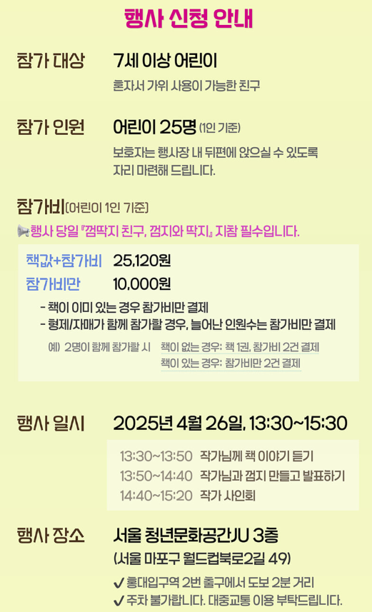 허정윤 작가님의 경우 신간이 출간되면 북토크 행사를 종종 여시는데요 이번엔 어린이들을 대상으로 진행되는 행사라 동글이 손잡고 YES24에서 신청 후에 참여 했답니다.