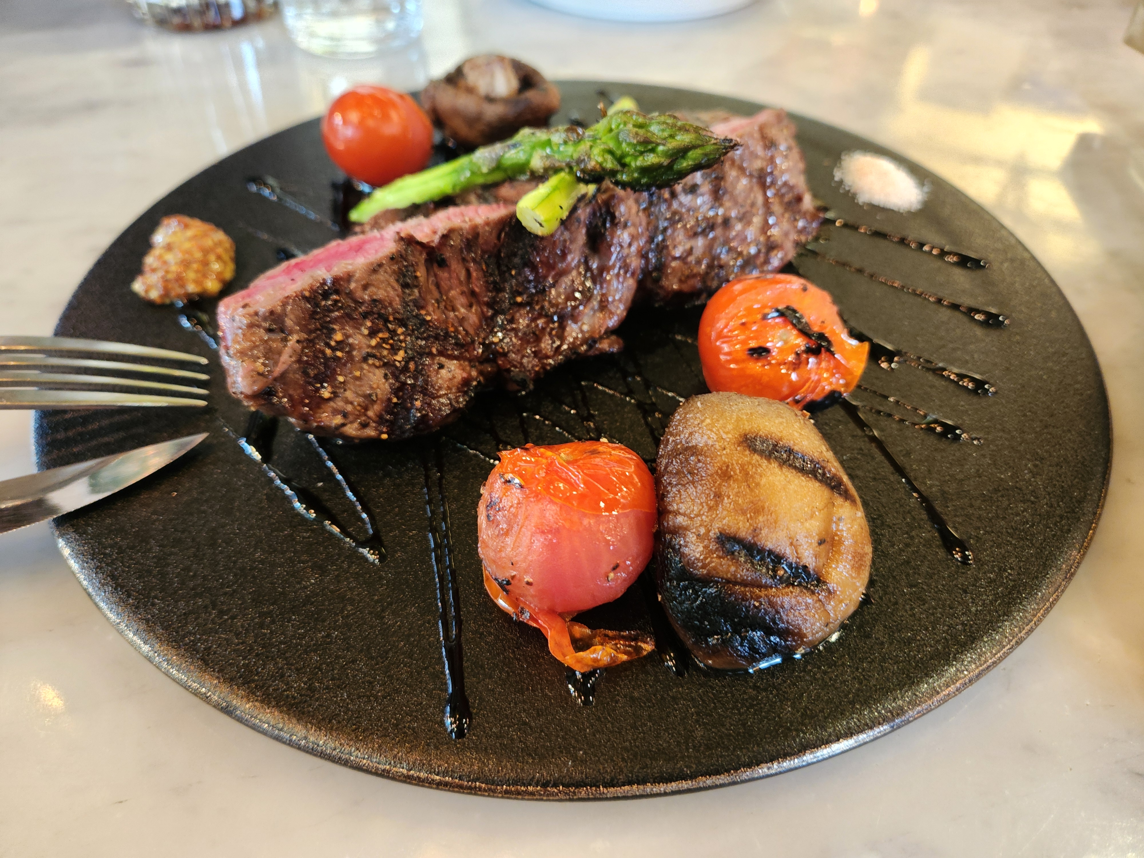 안심 스테이크를 주문하고 싶었는데 주문 불가 상태였어서 등심 스테이크와 구운 야채로 주문했어요.