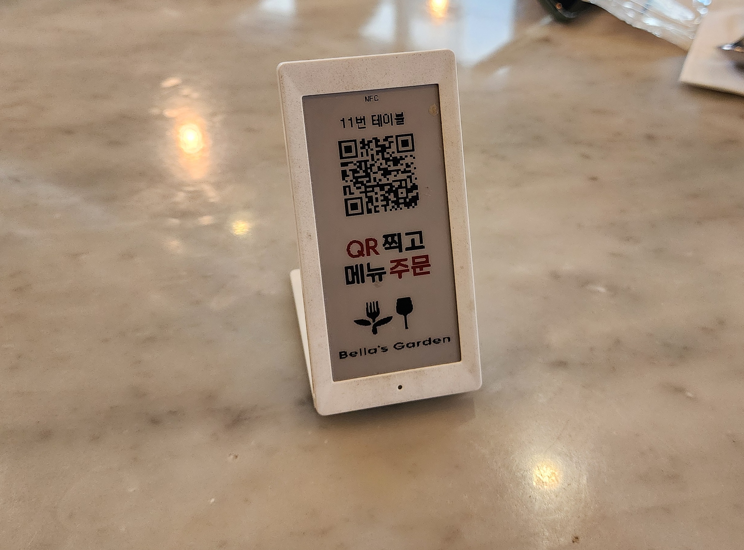 테이블마다 QR코드가 있어서 메뉴를 주문하도록 되어있었고 공휴일에 방문해서 테이블 이용시간이 2시간이라고 안내 받았어요.