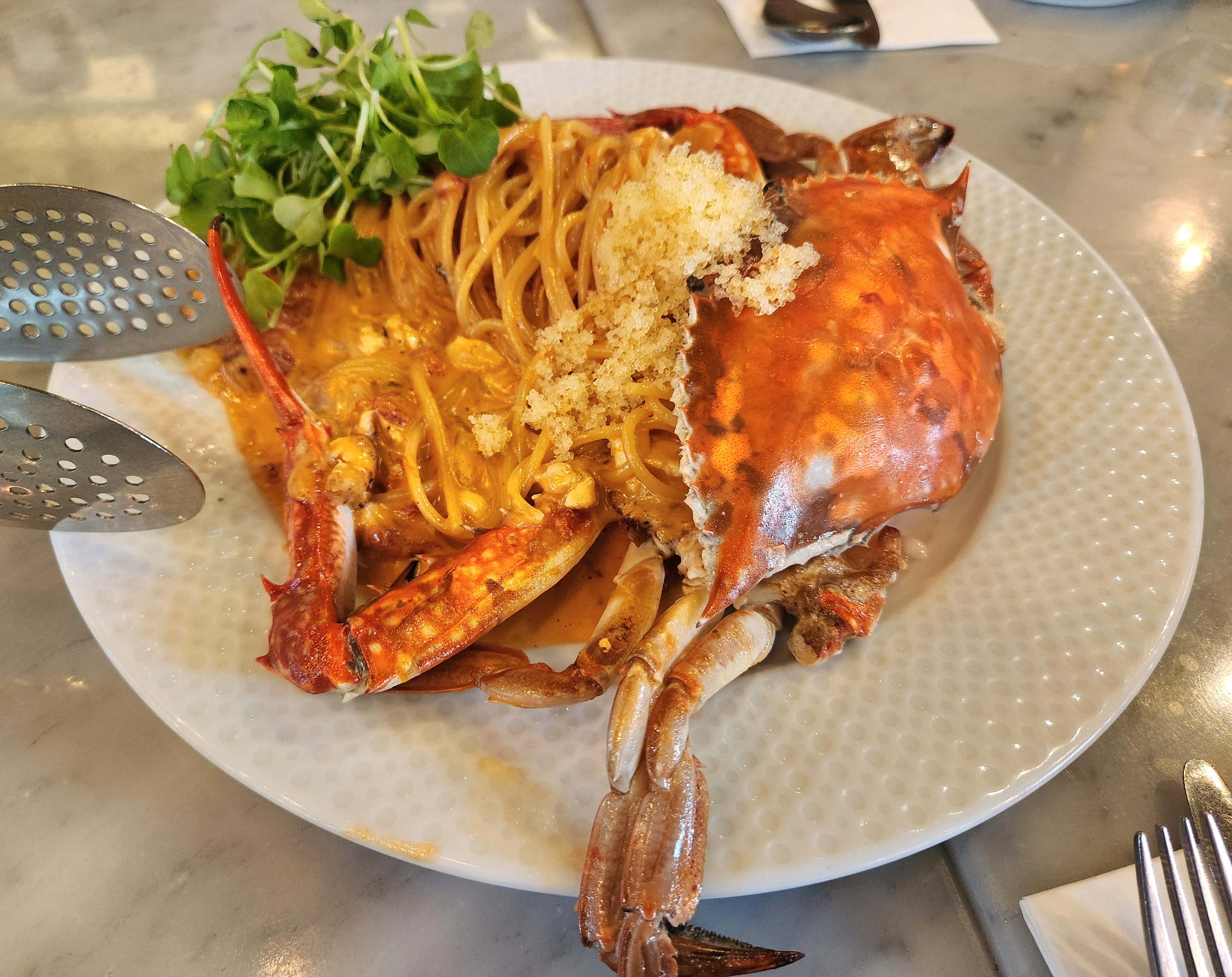 날치알이 올라간 꽃게 로제 파스타가 나왔어요.