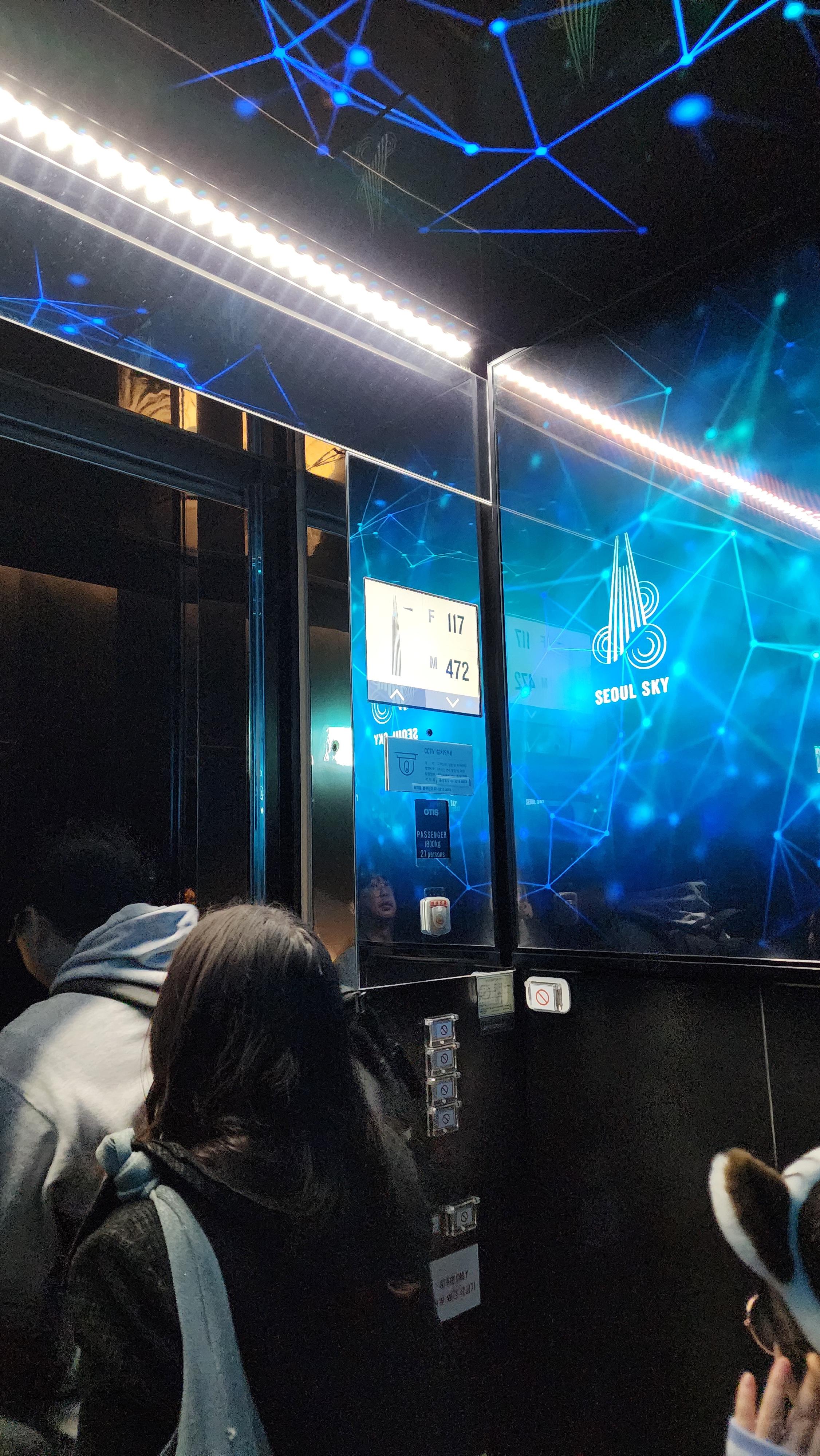 117층까지 정말 단숨에 올라가는데 엘리베이터 안에서도 미디어아트가 펼쳐져요.