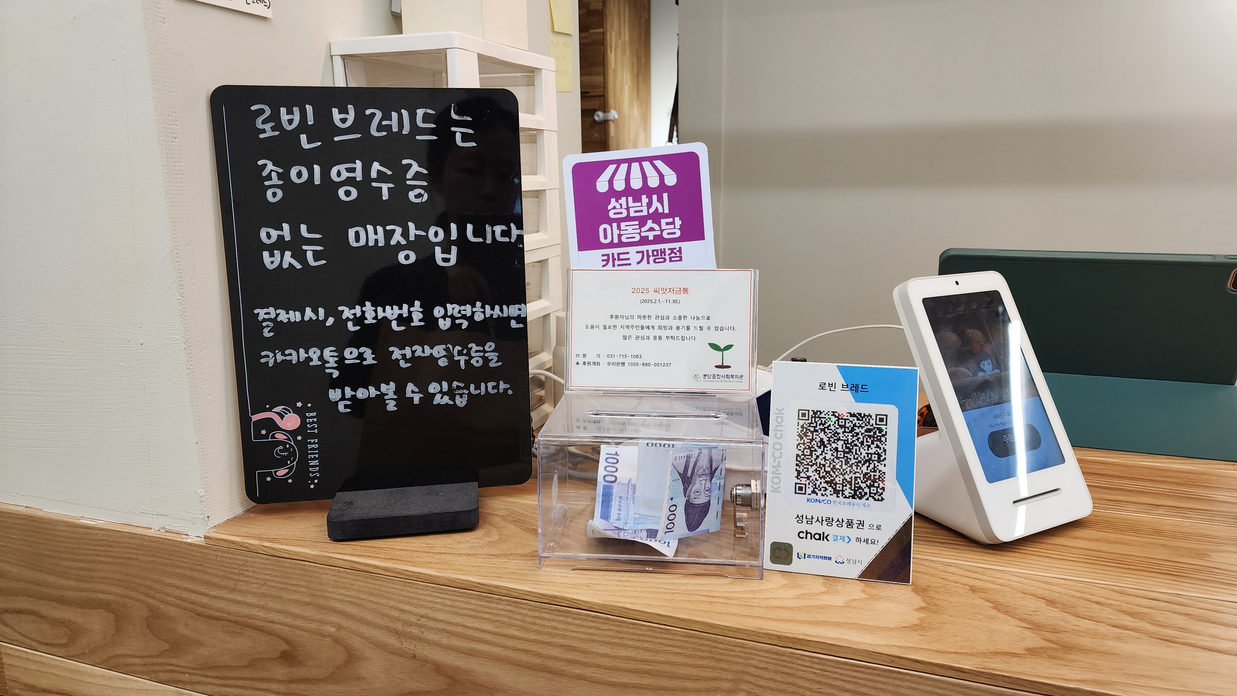 입구에 손 씻을 수 있는 세면대도 있고 벽엔 빵집 사장님과 아들 로빈이 사진액자도 걸려있더군요.
