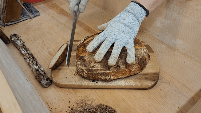 치즈 풍미가 좋은 빵에 루꼴라랑 올리브 유 곁들여먹음 맛있을 것 같아서 고다치즈 하프도 달라고 하고, 호밀스틱도 썰어달라고 부탁드렸어요.
