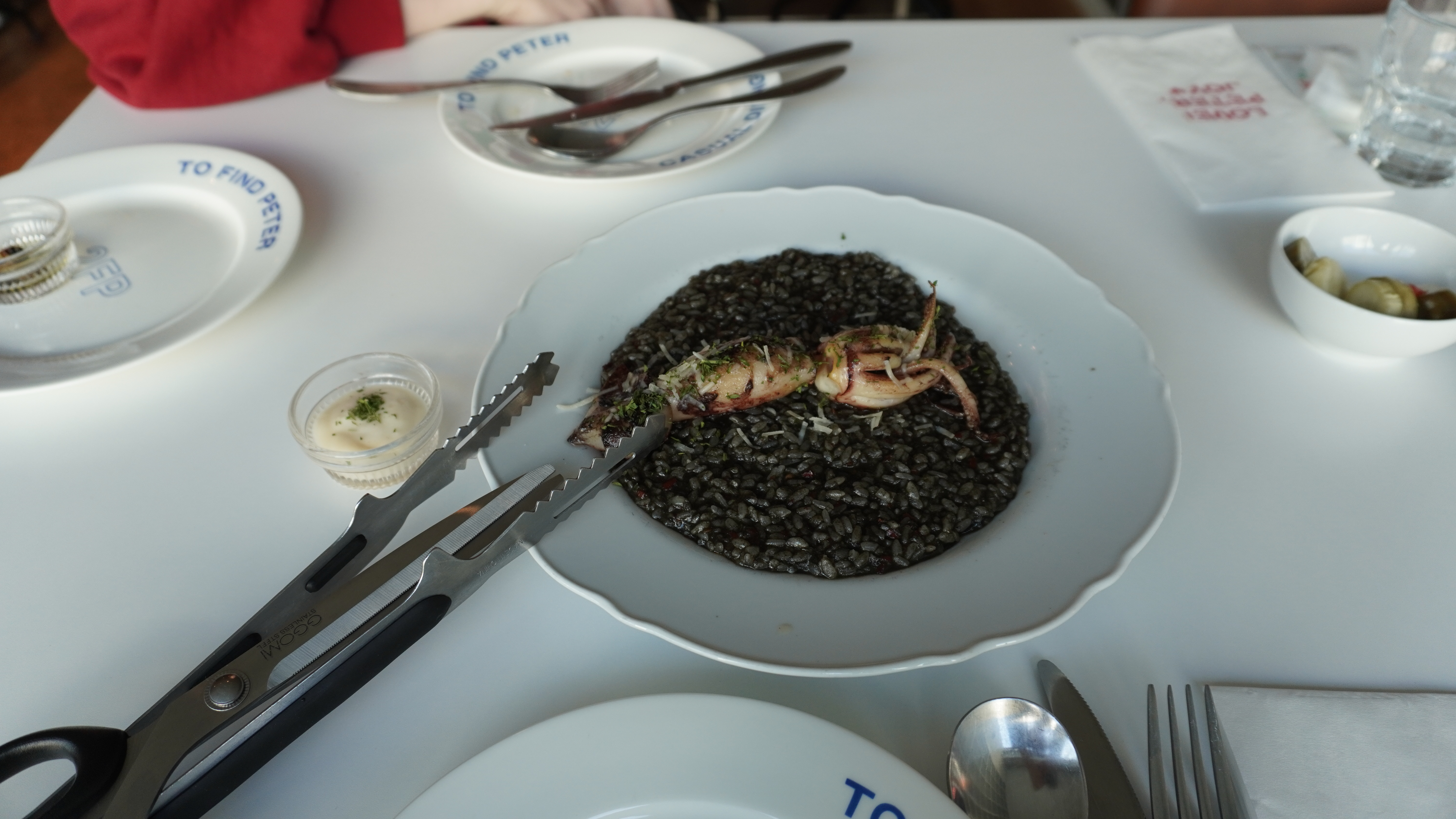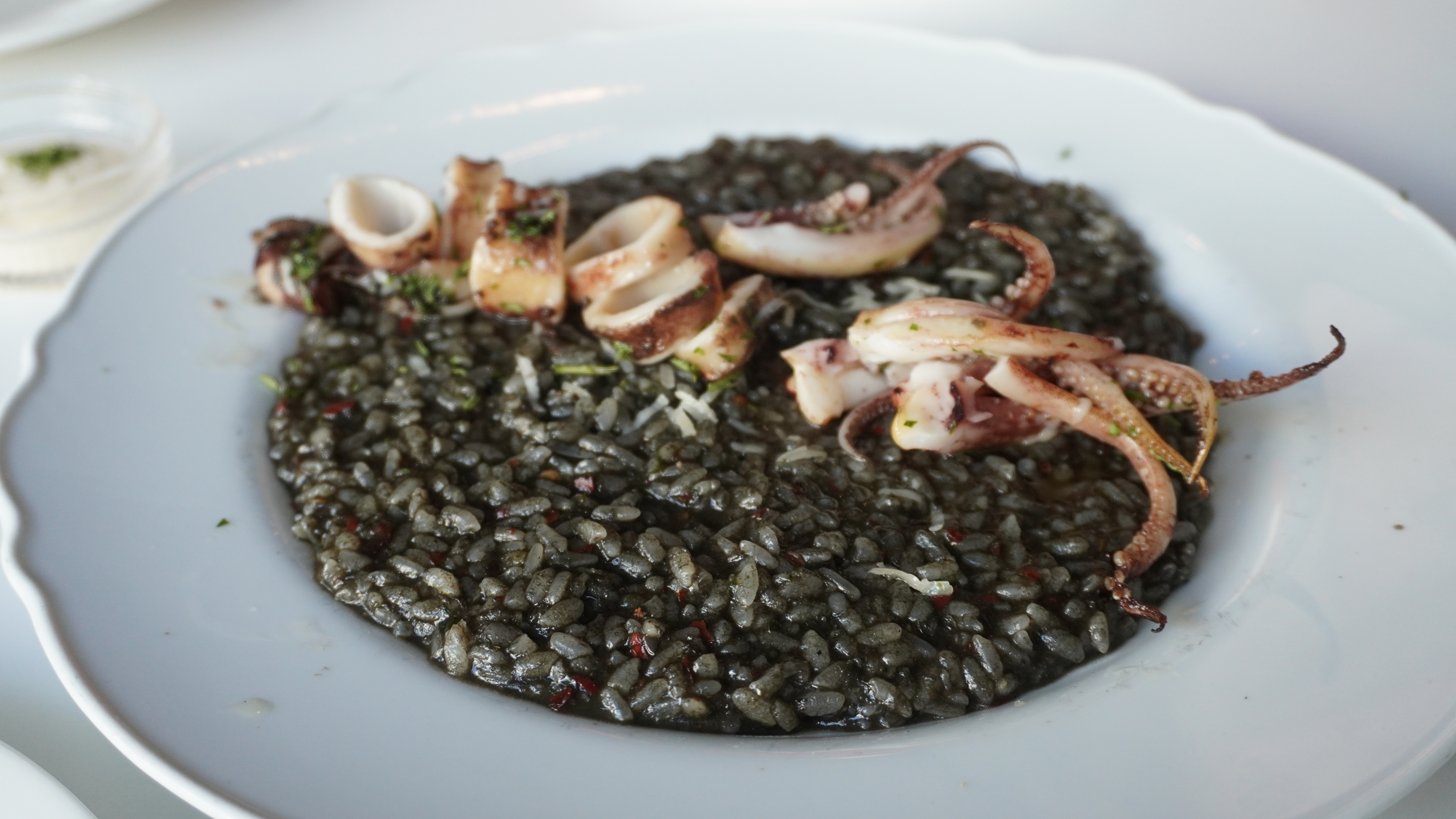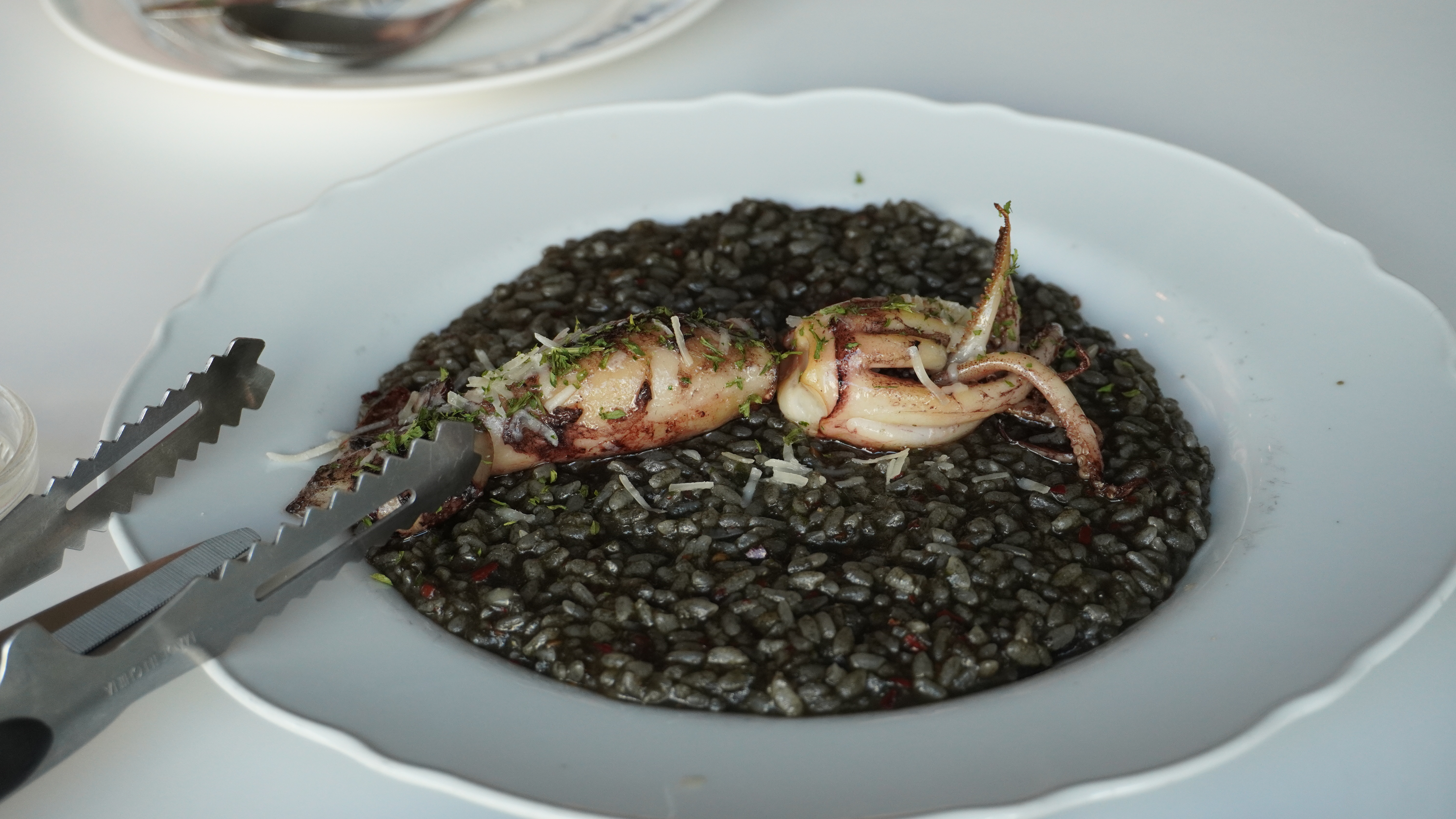 통오징어 먹물 리조또 위에 오징어는 깜찍했어요.