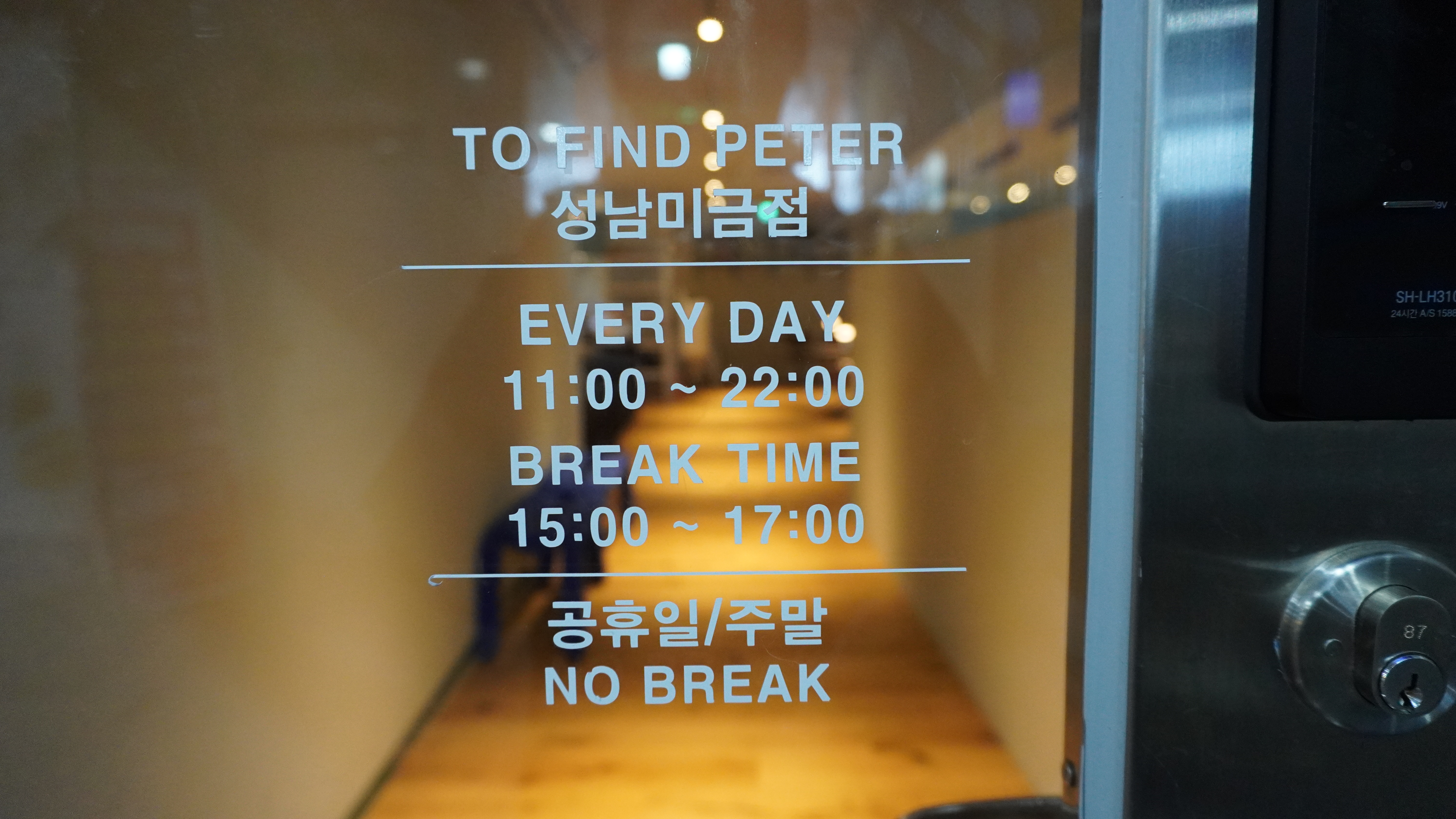 투파인드피터 운영시간의 경우 평일엔 브레이크 타임이 있으니 참고하세요.