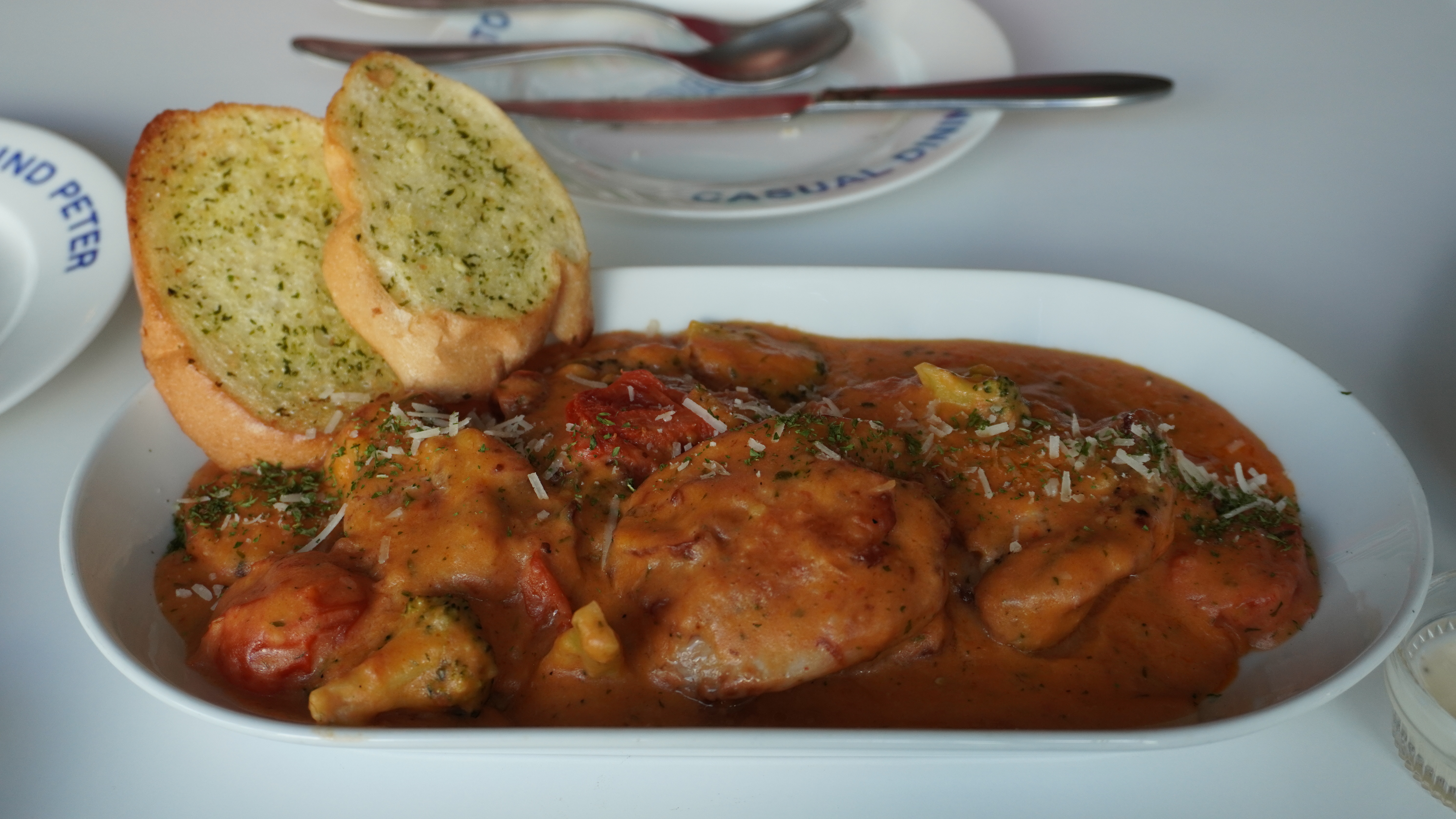 로제 치킨 스테이크는 치킨을 오븐에 구운 후 로제소스에 자박하게 끓여냈다고 하는데 곁들인 마늘빵이랑 먹기 좋더라구요.