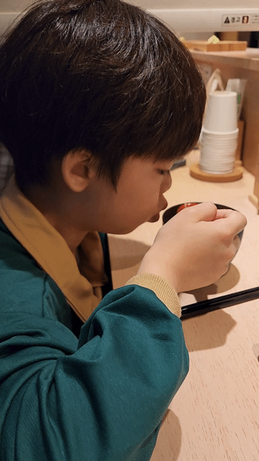 장국이 일본된장 맛이 아니고 좀 진한 색이었는데 장국 안에 생선살이 들어있더라구요.