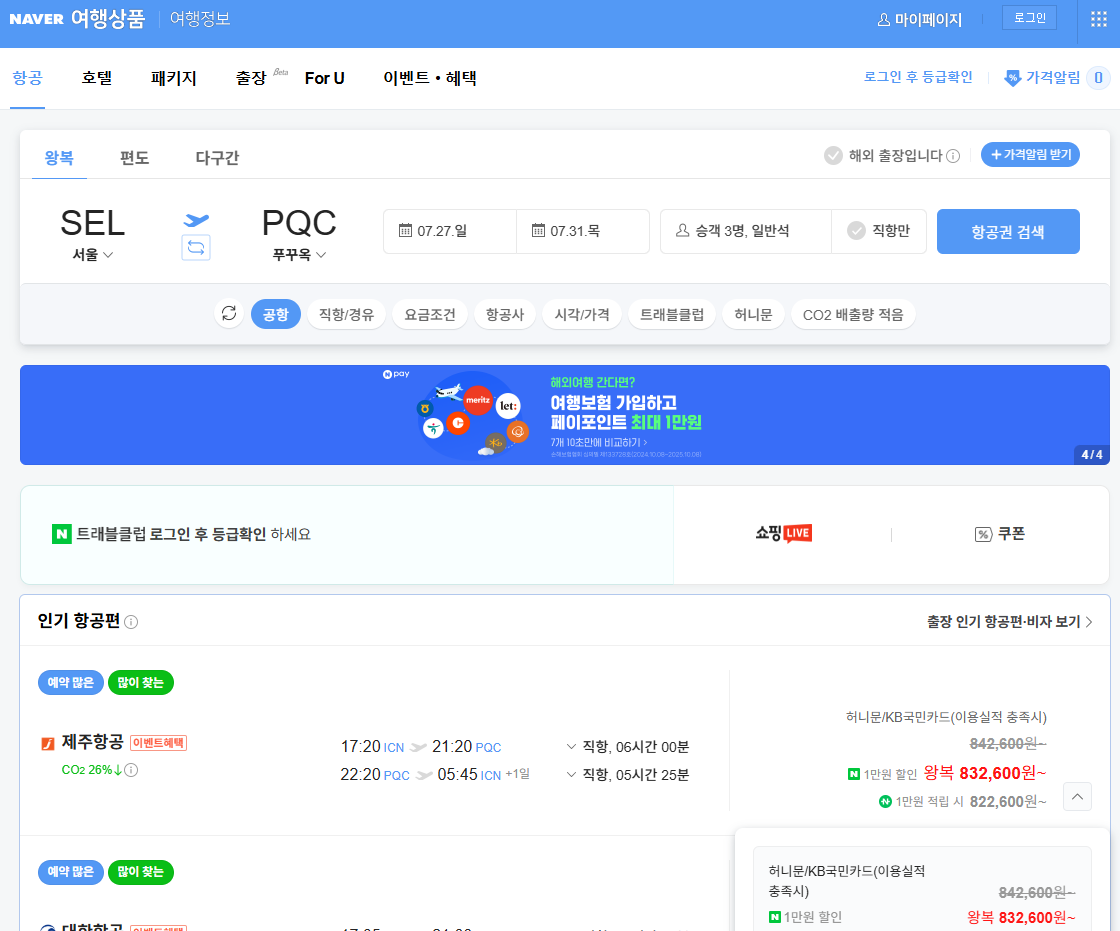 1. 네이버 여행상품