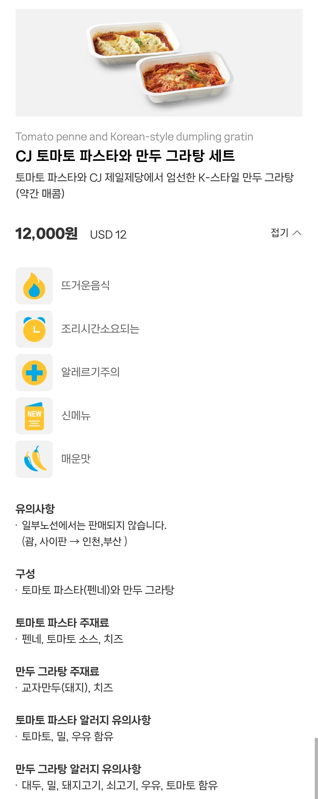 CJ 토마토 파스타와 만두 그라탕 세트 메뉴는 동글이가 먹고 싶대서 예약했었는데요 살짝 칼칼한 맛이나서 아이가 먹기 힘들어하더라구요.