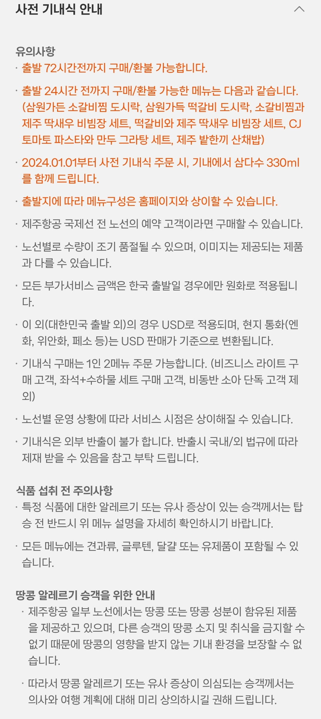 사전기내식 신청