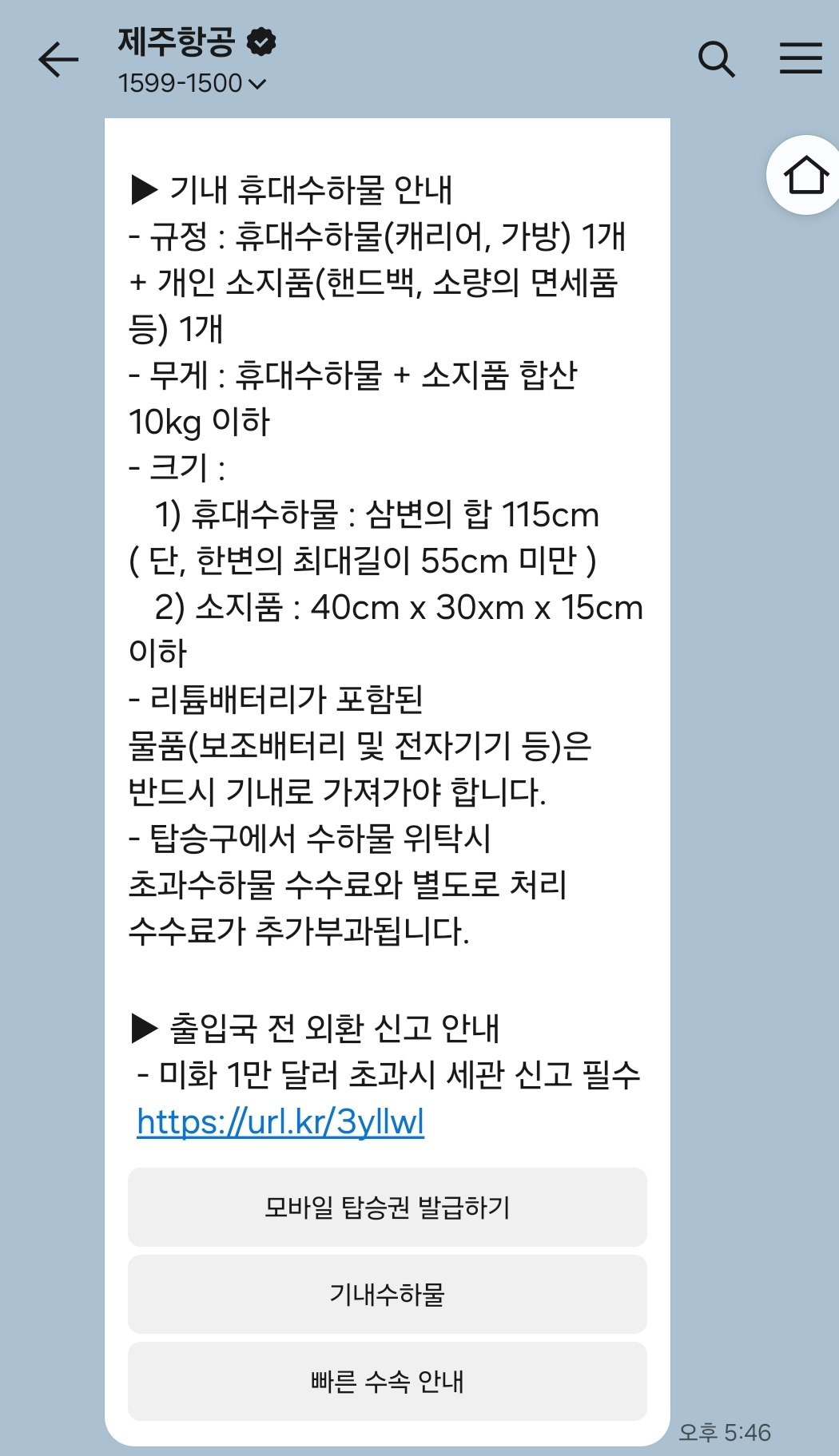 모바일 탑승권은 탑승 24시간 전에 가능해서 카톡으로 모바일 탑승권 발급하기 안내 톡이 오자마자 좌석 선택해 모바일 탑승권을 발급했어요.