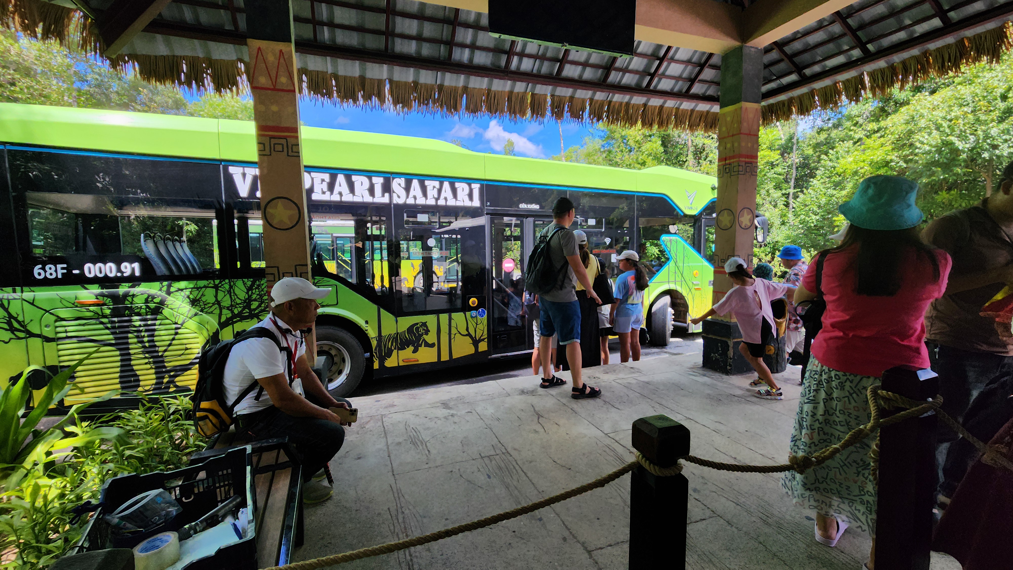 이 사파리 버스는 전기버기와는 다른 버스로 9시 30분 부터 15시 20분까지 운영하는데요 전기 버기 타고 기린식당쪽에 내리셔서 걸어 올라가면 사파리 존이 따로 있어요. 사람들이 많이 줄서있을테니 찾아 가는건 어렵지 않은데요 인파가 몰렸을 때 기다리는건 좀 지루할 수 있어요.