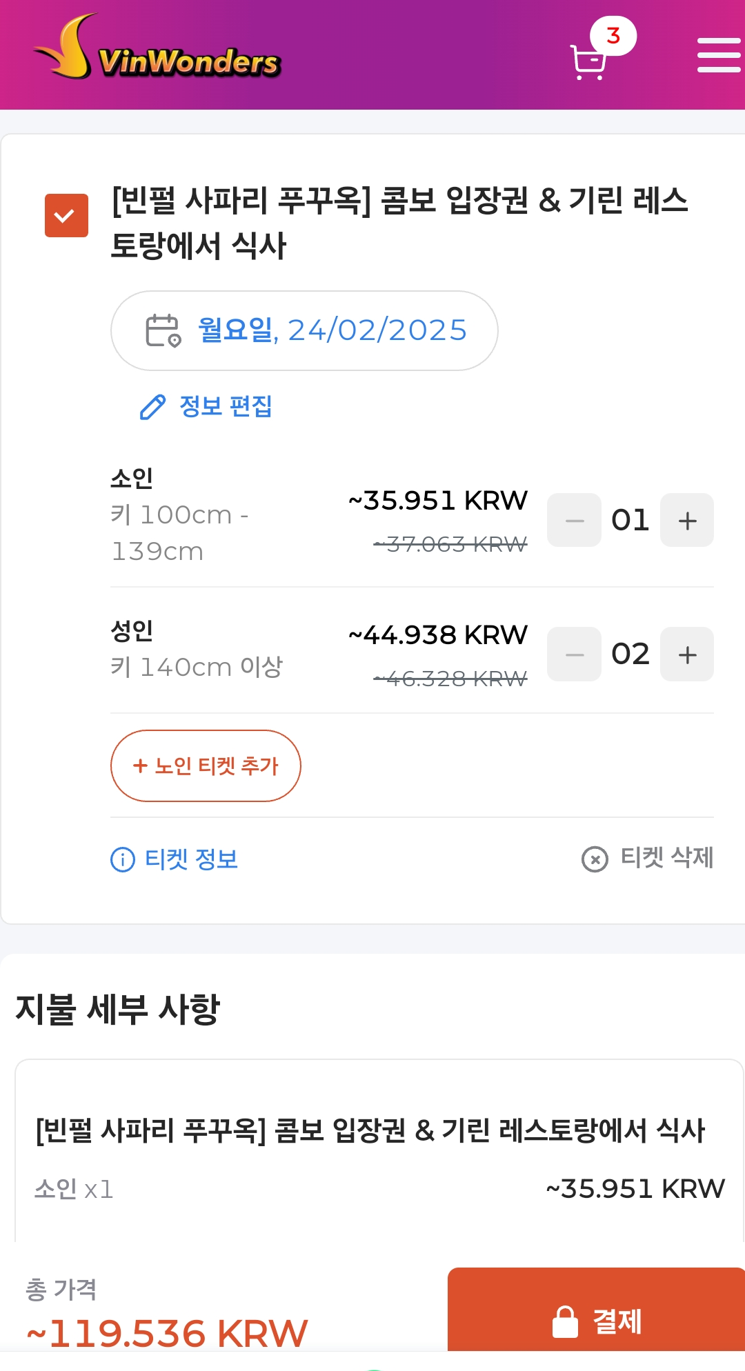 투어비스나 클룩 등 예약사이트에서도 가격비교를 했었는데요 제가 구매할 당시에는 빈원더스 공식홈페이지가 가장 저렴했고요 시즌마다 가격 변동이 있으니 예약할 때 가격 비교를 꼭 해보시면 좋겠어요.