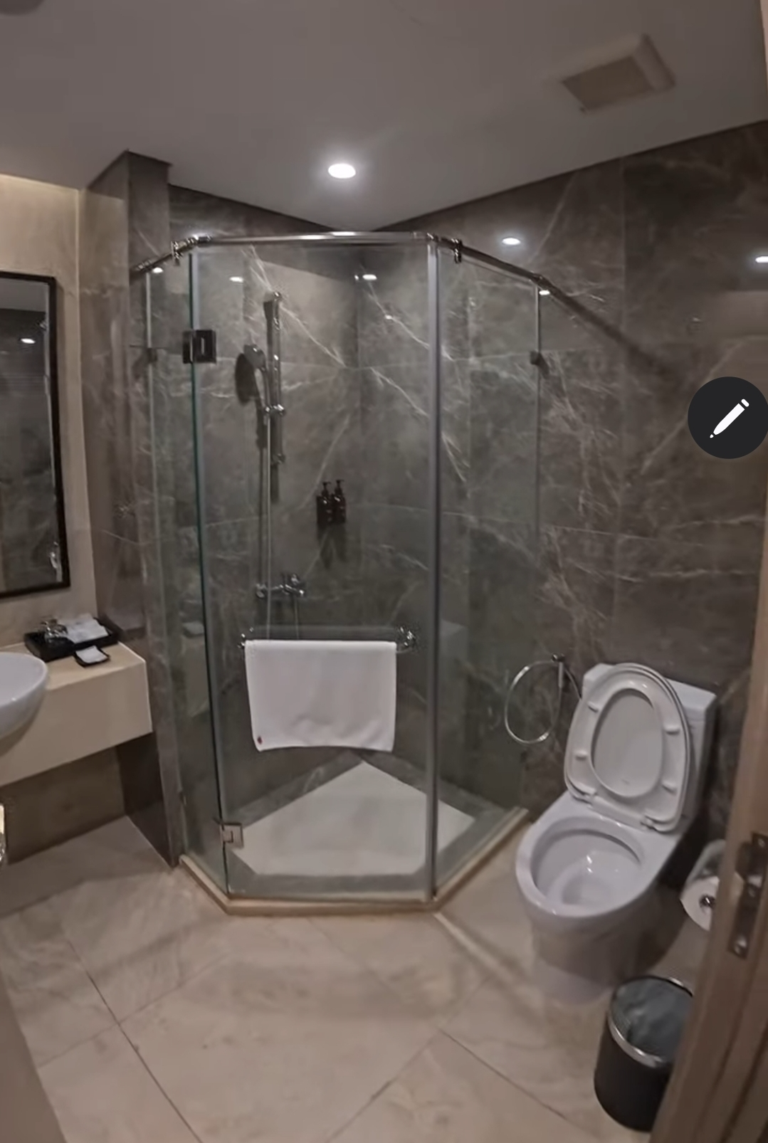 욕실은 샤워부스 세면대, 변기가 함께 있었는데요 필요한 것들로 구성되어있고 깔끔했어요.