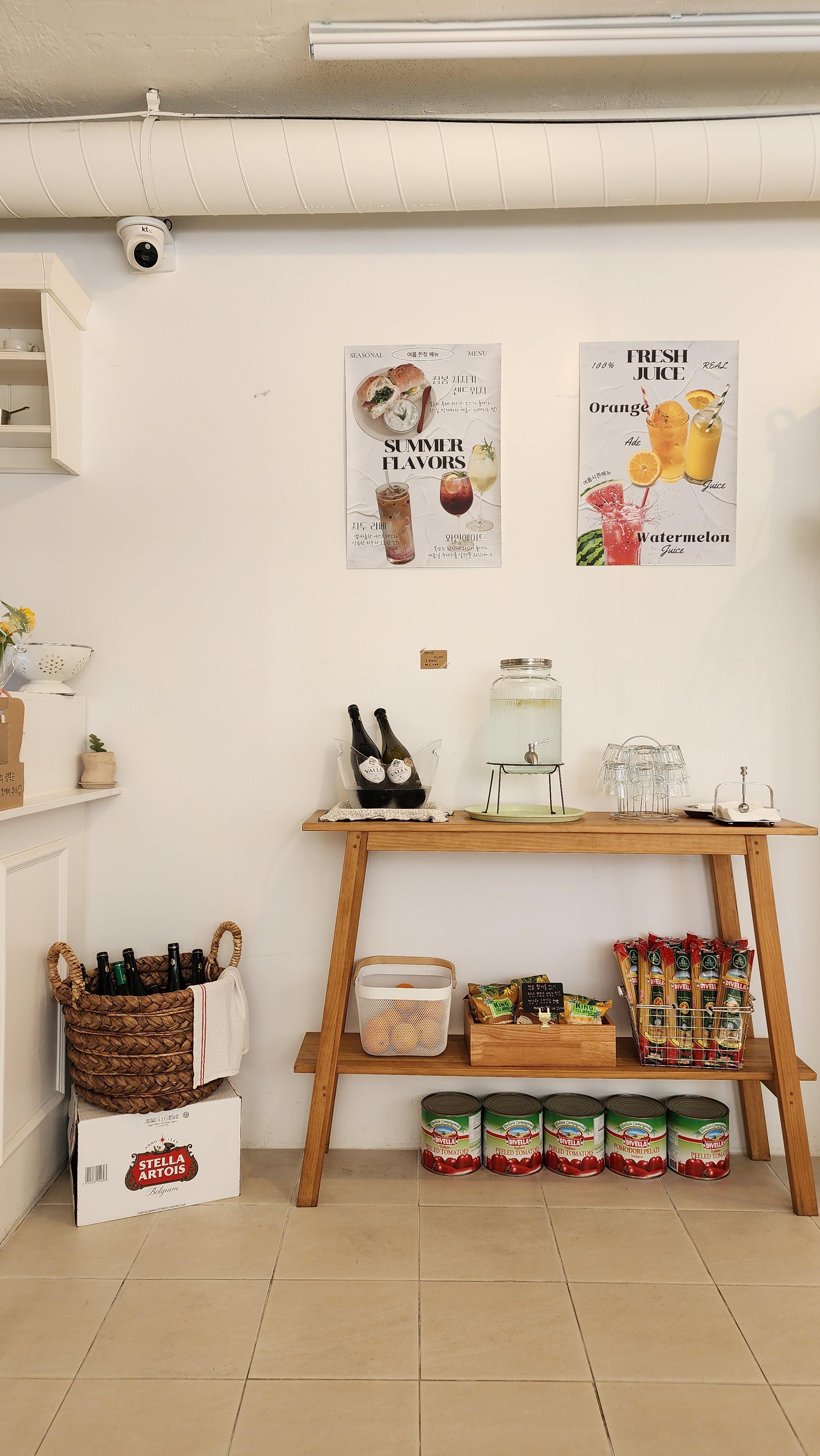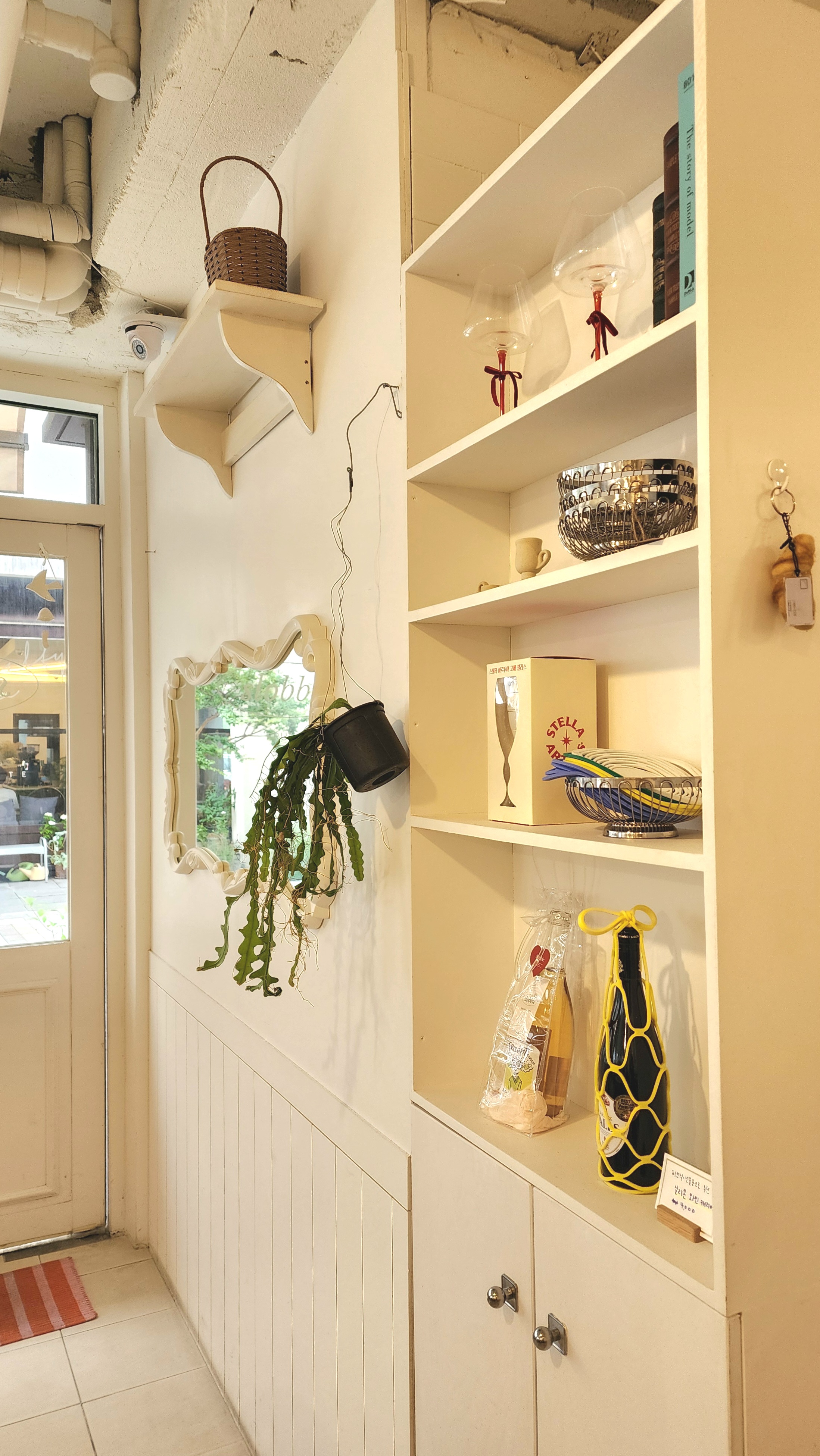 화이트톤의 인테리어와 아기자기한 소품들, 그리고 사진 찍고 싶어지는 거울이 있더라구요.