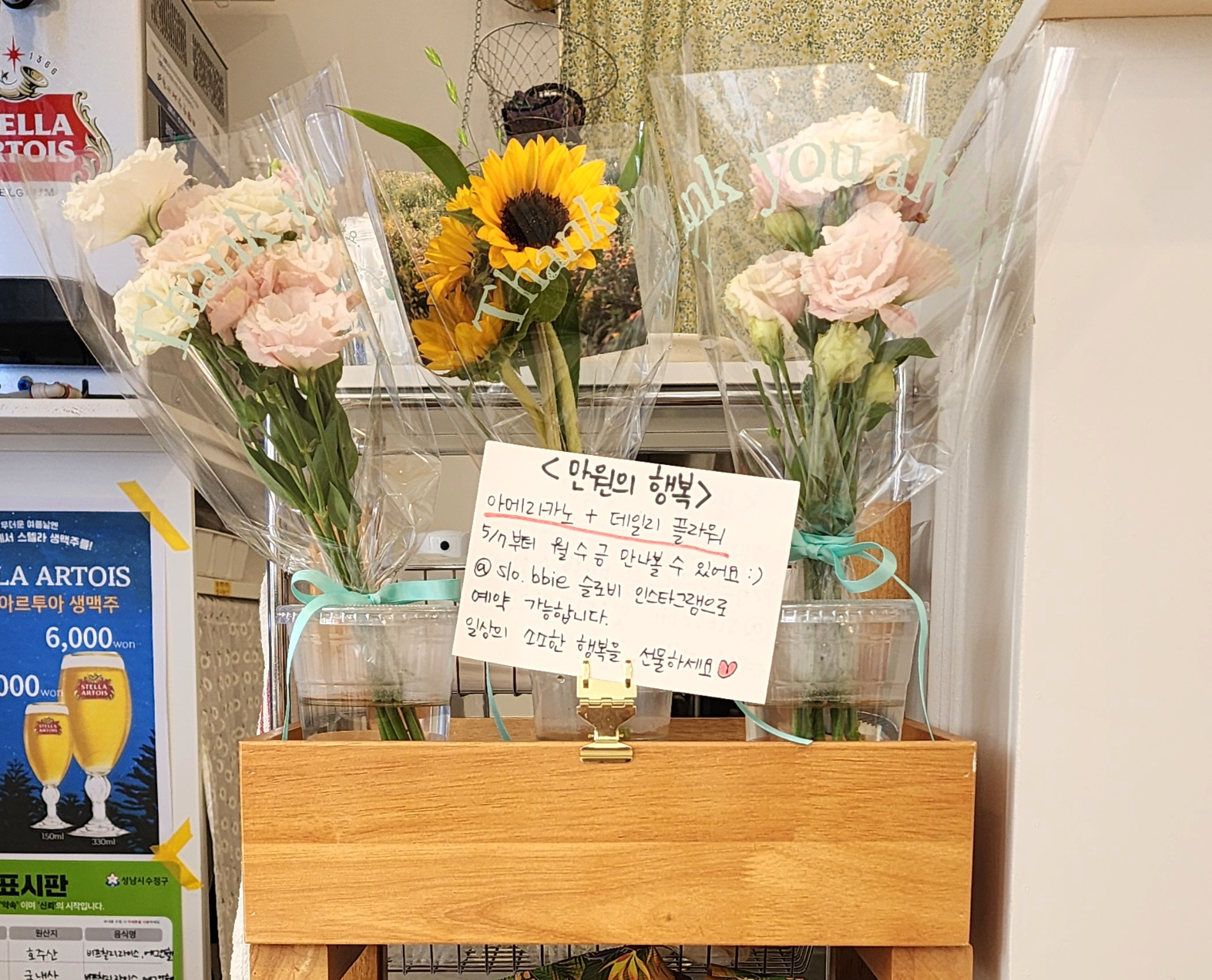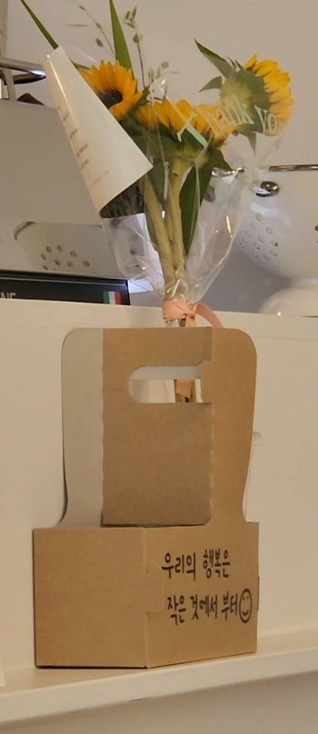 아메리카노를 테이크아웃 할 경우 꽃과 커피를 트레이에 주시는데 저는 식사하면서 매장에서 마셨기 때문에 꽃은 따로 포장해주셨어요.