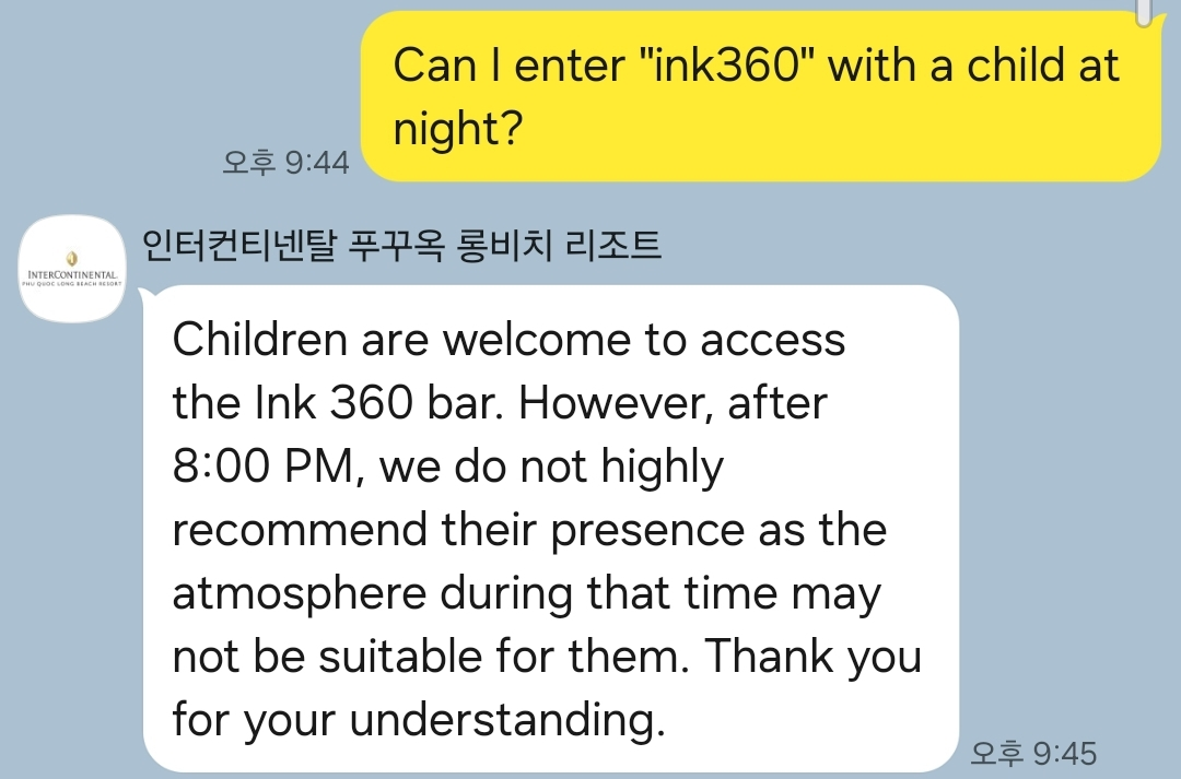 저는 밤에 방문하려 했는데 어린이가 동반 가능한지 부터 문의했어요.