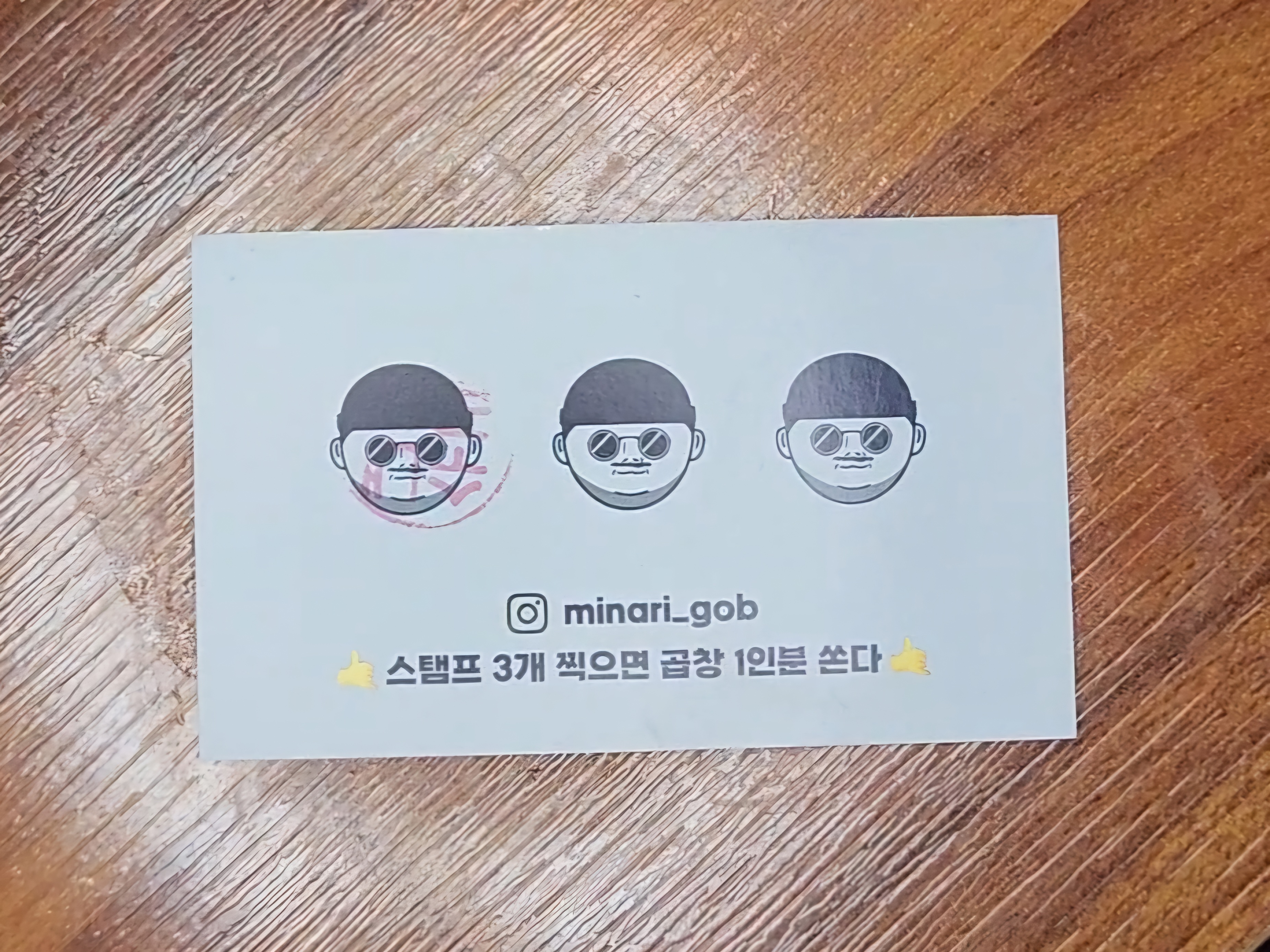 수내곱창에서는 방문시 쿠폰에 스탬프를 찍어주시는데요 스탬프 3개를 모으면 곱창 1인분을 준대요.