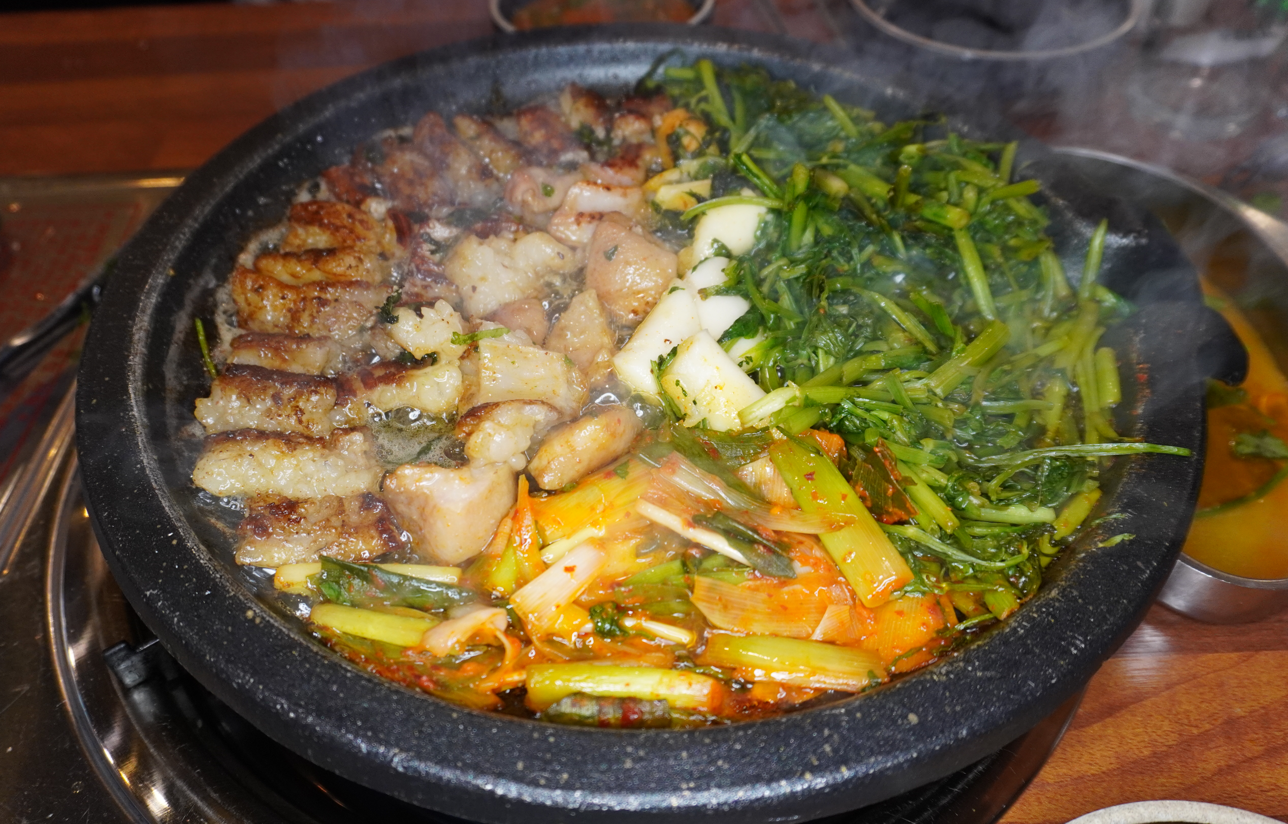쏘맥과 함께 떡, 한우곱창, 한우대창, 소막창, 떡사리, 직접 담근 대파김치에 산더미같이 쌓아 주는 미나리가 킥이더군요.