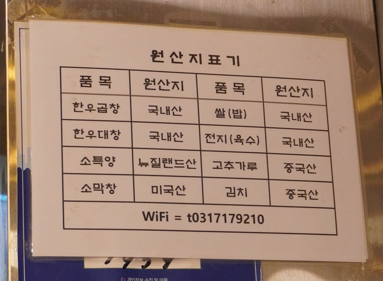 한우곱창, 한우대창은 국내산이었고 소특양은 뉴질랜드산, 소막창은 미국산이었어요.