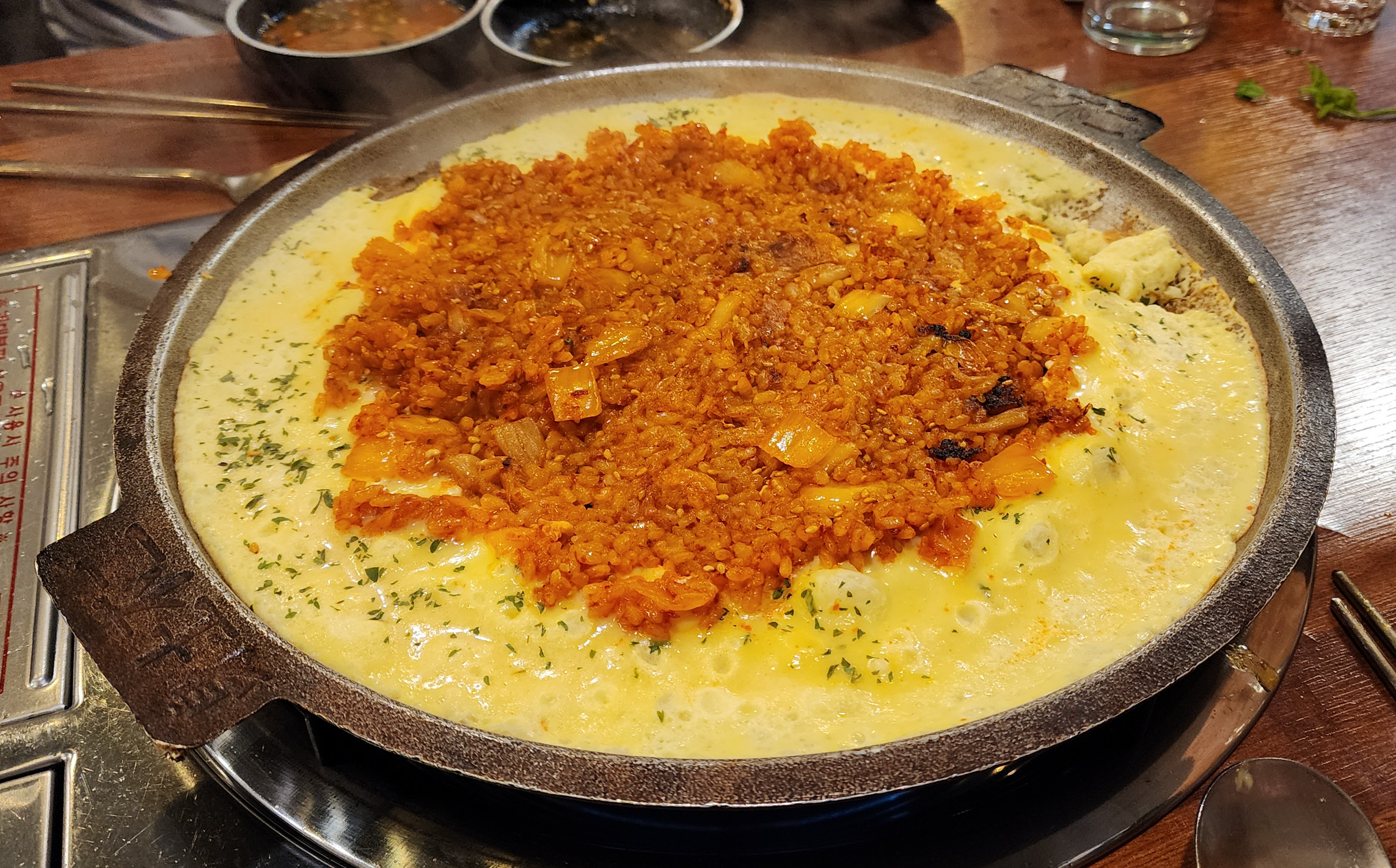 매콤한 김치 볶음밥과 함께 둘레에 계란찜이 나오는데 이거 정말 별미더라구요.