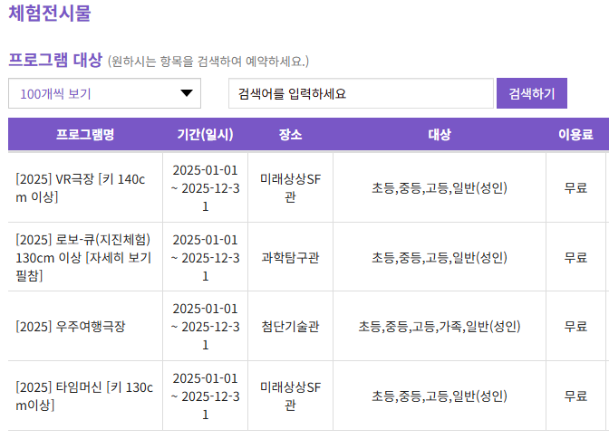 체험전시물 프로그램도 미리 하시면 좋아요.