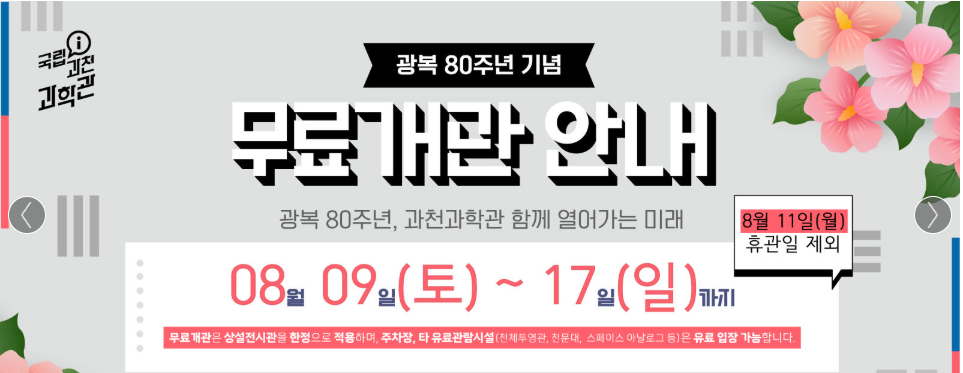 주차장이나 타 유료관람시설은 제외이지만 상설전시관을 무료로 관람할 수 있으니 과학관 가실 계획이 있으신 분들은 무료로 관람해보시길 바랄게요.