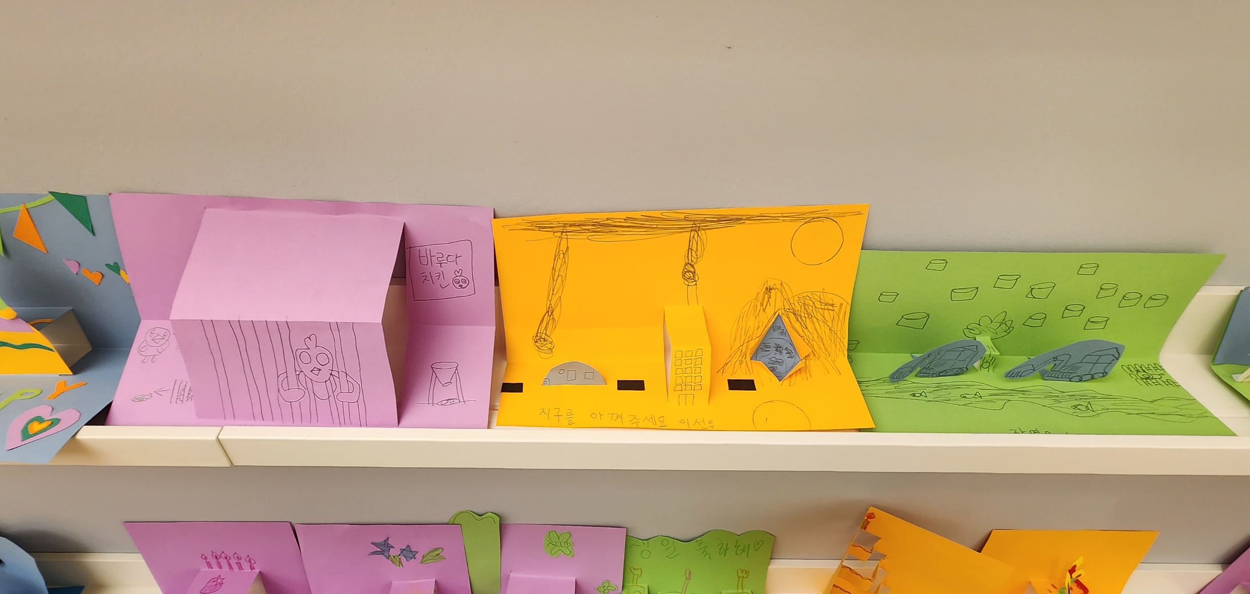 동글이는 아코디언북 만들기 활동을 재미있어 했는데요, 제법 열심히 만들어서 전시해놓고 왔답니다.