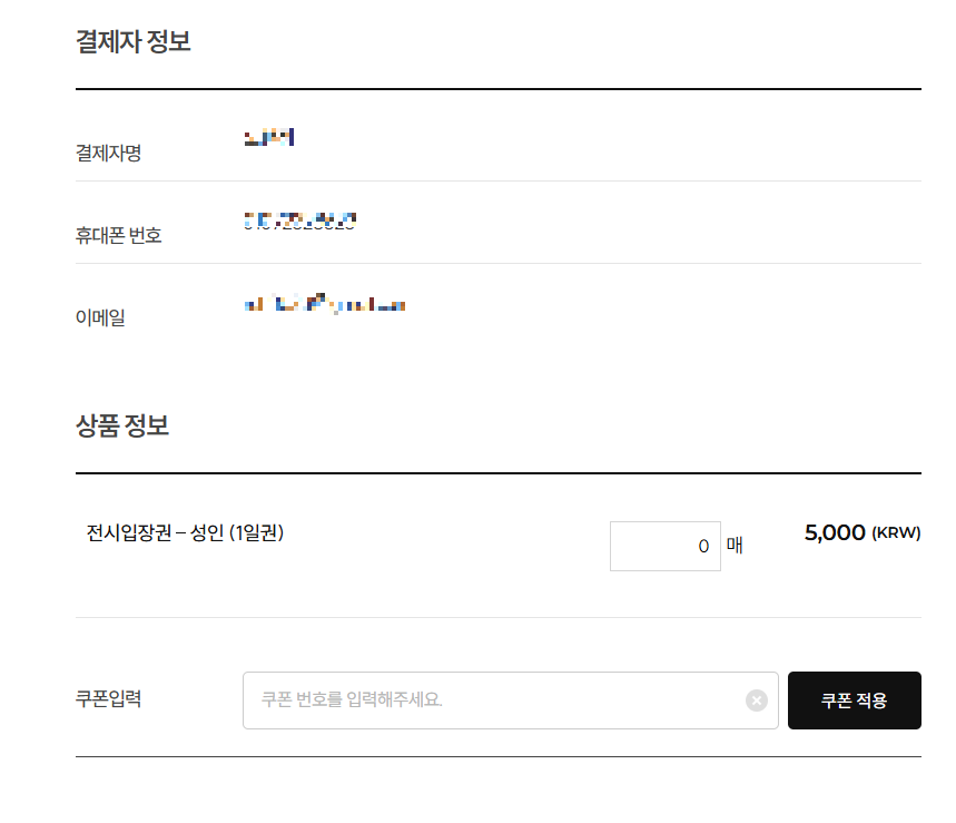 전시장 입장 티켓 가격 한번 보시겠어요?