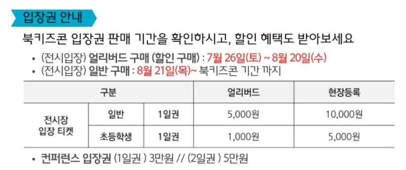 8월 21일 이후에는 정가로만 구매하셔야하기 때문에 북키즈콘에 가려고 마음 먹으신 분들은 얼리버드 티켓 구매로 꼭 혜택 보셨으면 좋겠어서 포스팅 시작합니다.