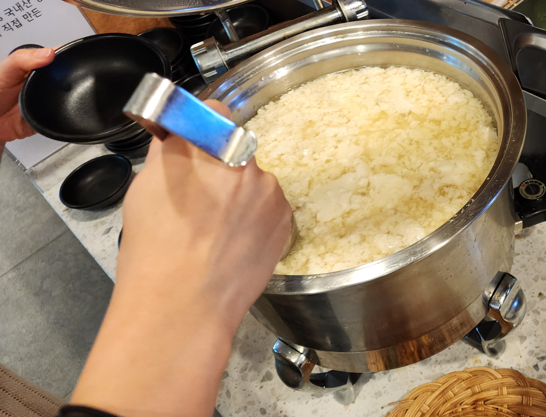 매일아침 가마솥에서 손두부를 직접 만들고 식사 후에는 콩비지도 받을 수 있는 식당인데요,