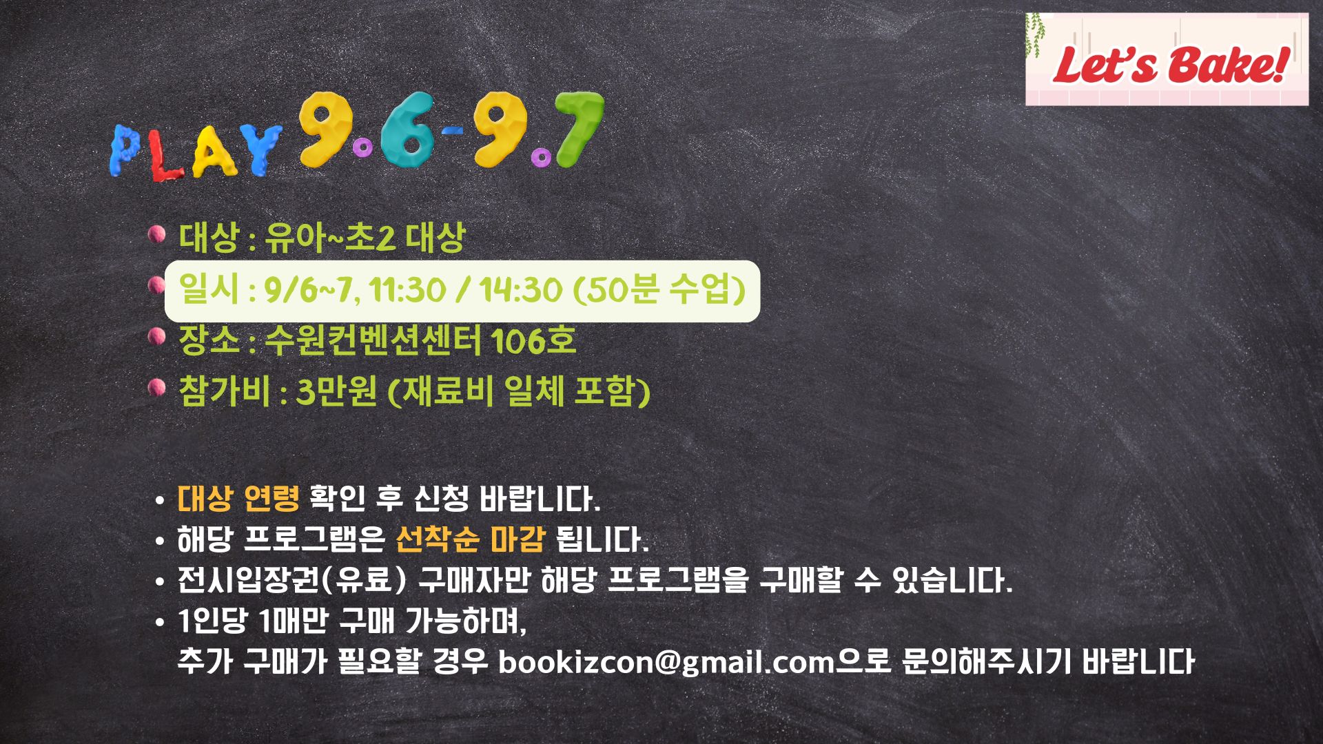 원어민과 함께하는 베이킹 클래스도 좋고 그림책 으로 마음을 보듬는 시간을 아이들에게 선사해 주신후 조금 여유로운 마음으로 북키즈콘을 관람해보시는걸 추천해드려요.